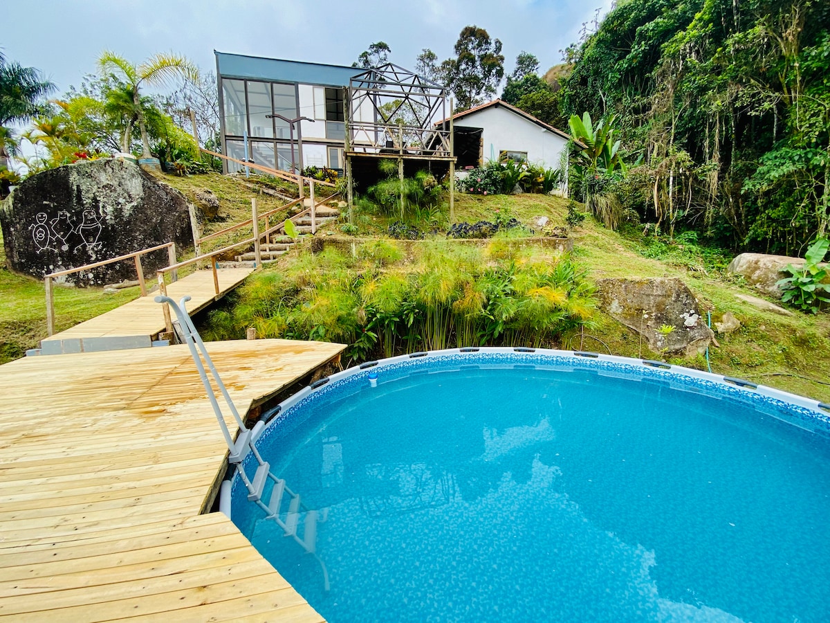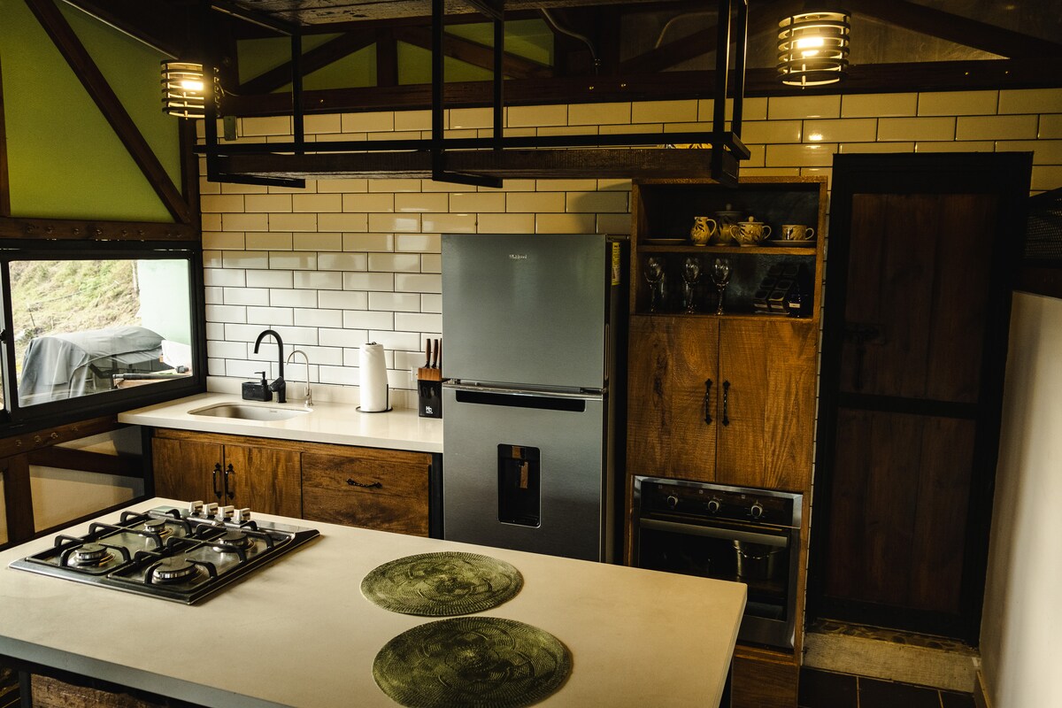 Dobro došli u našu udobnu brvnaru u srcu prirode, koja se nalazi u prelijepoj opštini Jardín, Antioquia. Uživajte u jedinstvenom doživljaju okruženom spektakularnim pejzažima, idealnim za odvajanje i opuštanje. Naša brvnara nudi pogled koji oduzima dah na planine i dolinu, pružajući vam spokoj koji vam je potreban. Dođite i doživite Jardín, čarobno selo u kojem se spajaju kultura, priroda i kolonijalna arhitektura.