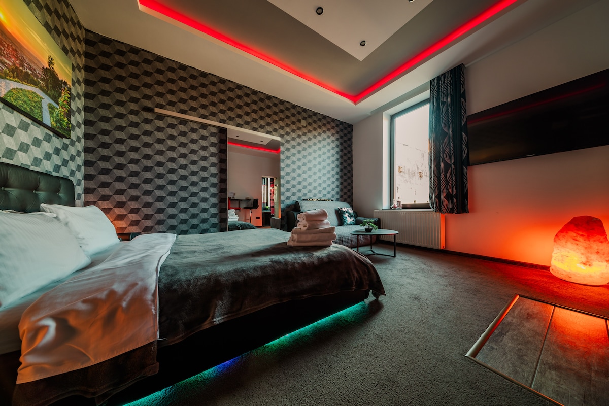 SOBA „21” je dio ekskluzivne kolekcije od tri stana, pažljivo osmišljenih kako bi spojili modernu eleganciju s toplim i privlačnim ambijentom. Uživajte u plišanim, debelim tepisima pod nogama i potpuno prilagodljivom led osvjetljenju, a sve je smješteno u zadivljujućem zelenom pejzažu u podnožju planine Tâmpa Biće vam drago da znate da je Brašov živahno srce, Trg vijeća, udaljen samo pet minuta hoda, što vas nalazi na dohvat ruke od najboljih restorana, prodavnica i kulturnih atrakcija u gradu.