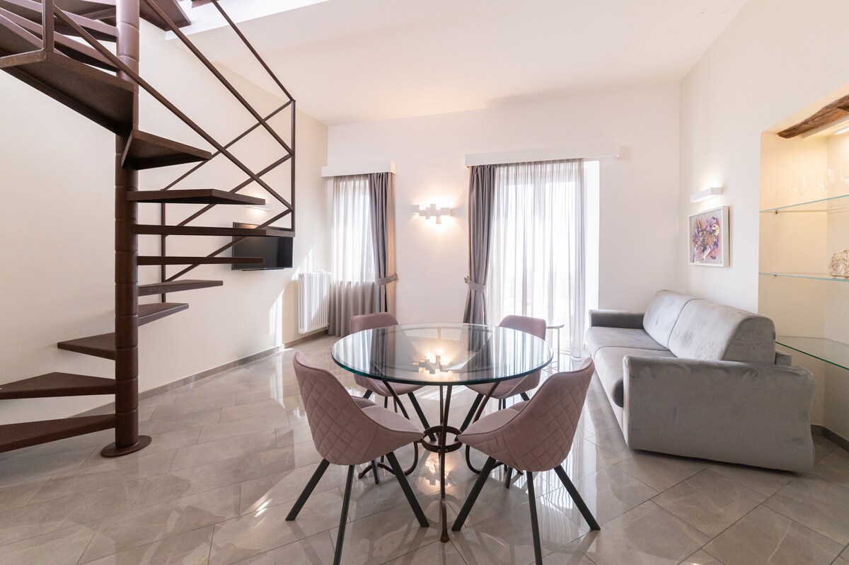 Veliki studio apartman od oko 50 kvadratnih metara, za 2 osobe koji se sastoji od velikog otvorenog prostora sa bračnim krevetom sa čajnom kuhinjom sa trpezarijom i prostorom za opuštanje sa velikim kaučem; stan ima veliko kupatilo sa duplim umivaonikom, a upotpunjen je velikim tušem i kadom. Stan je na prvom spratu i ima privatnu upotrebu velikog balkona na podu (stočić, dve stolice, dve udobne ležaljke). Boravišna taksa od 3 € po osobi po danu koja se plaća po dolasku.