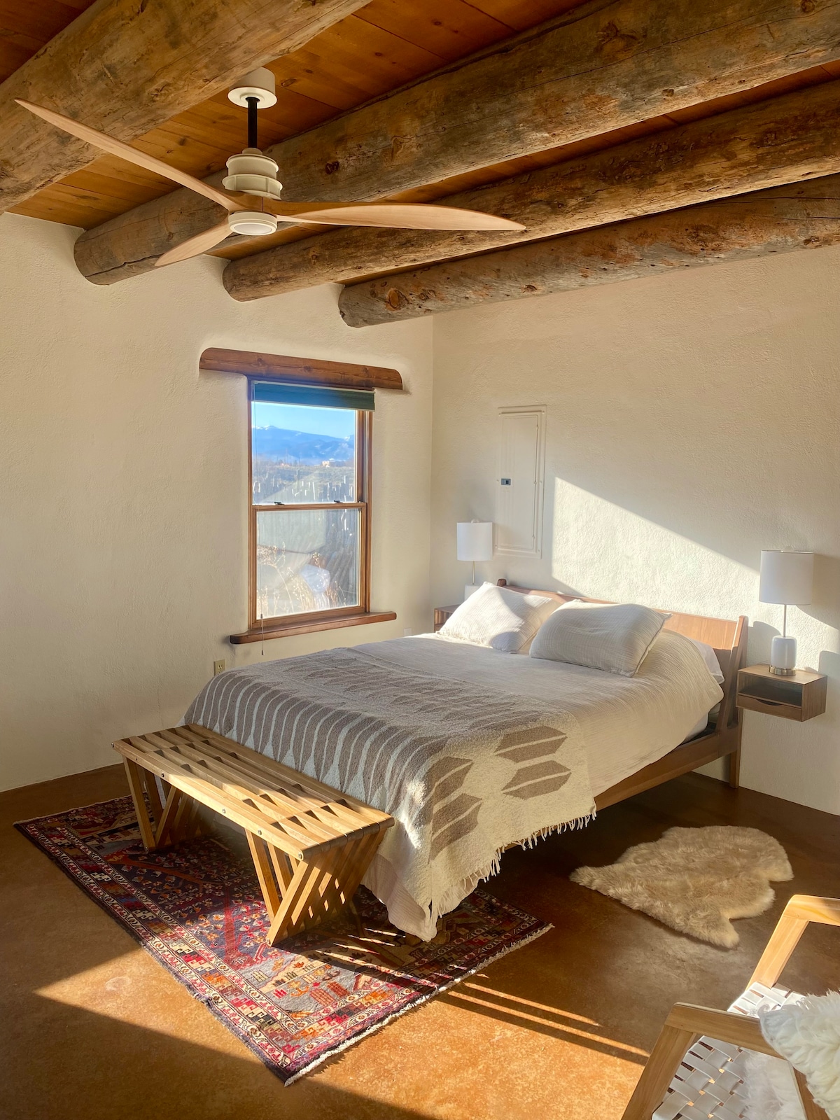 Naša moderna zemaljska kuća je udobno, zanatsko gnezdo koje tretira svoje posetioce svetlom, otvorenim prostorom i bojom. Ima mirno, privatno okruženje sa svime što je potrebno da bi vaš boravak bio udoban i, nadamo se, inspirisan. Na otvorenom je druga polovina ovog doma, stvarajući amfiteatar sa vrtovima, pticama, drvećem i visećom mrežom. Iza ovog privatnog gnezda se pruža pogled od 360 stepeni na planine Sangre de Christo, klisuru Rio Grande, spektakularne zaslone sunca i kilometre pješačkih i biciklističkih staza.