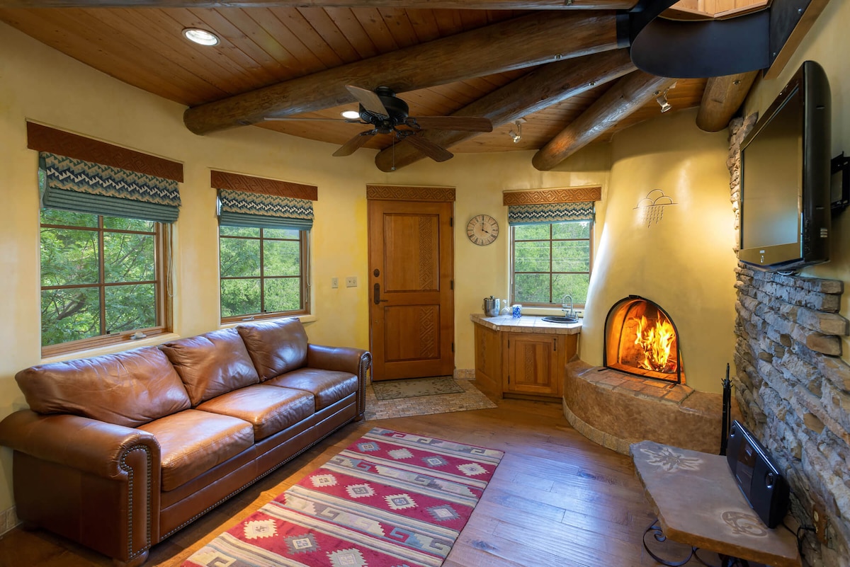 Samo 2 bloka od Taos Plaze sa dnevnim gurmanskim doručkom. Španski kolonijalni je prostrana soba na prvom spratu sa pogledom na planine, privatna terasa i ispunjena je ručno izrezbarenim detaljima i velikim vigama u plafonu od devet stopa. Kožni kauč ispred kamina na drva koja se pretvara u bračni krevet. Kupatilo ima dvostruke umivaonike, veliku tuš-kabinu sa kišnim šumama i hidromasažnu kadu sa hidromasažnom kadom za dve osobe. Kućni ljubimci nisu dozvoljeni u ovoj sobi.