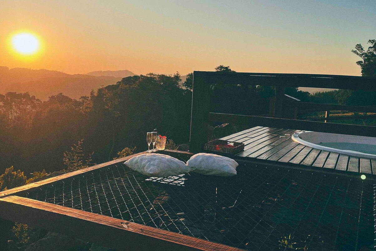 Cabana Sou Aconchego Udobno i sofisticirano utočište okruženo prirodom, idealno za parove, ali može da primi do 4 osobe. Brvnara nudi đakuzi, Wi-Fi, kompletnu kuhinju, veliko kupatilo sa tušem sa kamenčićima, dnevni boravak sa kaučem na razvlačenje, mezanin sa bračnim krevetom, terasu sa visećom ležaljkom za opuštanje i spoljašnje ognjište. Okruženi prelijepim pejzažima, u okolini se nalaze krave i pitome ovce koje gosti mogu da hrane. Savršeno za opuštanje, uživanje u miru i uživanje u nevjerovatnom pogledu!