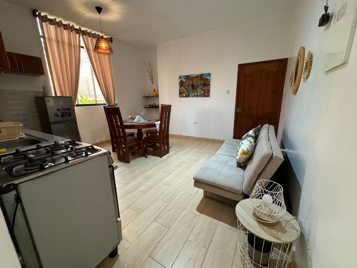 Zdravo! Moje ime je Lusija i ovo je moj novi stan u Tarapotu, posebno dizajniran za prijatan i udoban boravak. Prostran je, svetao, sa klima-uređajem, internetom, pametnim televizorom i veoma dobro opremljenom kuhinjom. Imate i malu i lepu terasu za zajedničko korišćenje, sa visećom mrežom i pogledom na ulicu. Nalazi se 10 minuta od Plaza Mayor i 15 minuta od aerodroma. Blizu Plaza Vea, teretana, Café La Jardinería i u mirnom i sigurnom području.