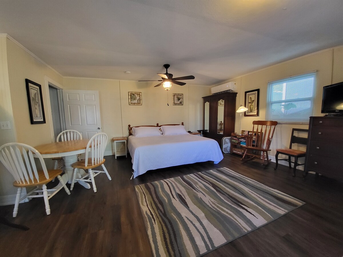Cooper Cabin je izuzetno slatka i besprekorno čista samostalna garsonjera sa kompletnom kuhinjom i kupatilom. Zbog alergija na posetu porodici i prijateljima, NE DOZVOLJAVAMO KUĆNE LJUBIMCE ili ŽIVOTINJE ZA SAPUTNIKE, pa možete da budete sigurni da alergeni za životinje NEĆE predstavljati problem! Smješten na pješačkoj udaljenosti od svega, Tarpon Springs i samo 7 minuta vožnje do plaže Fred Hauard, brvnara Kuper ukrašena je zabavnim dekorom i opuštajućim balkonom na tremu sa bistro setom. Obezbeđeni su bicikli i oprema za plažu!