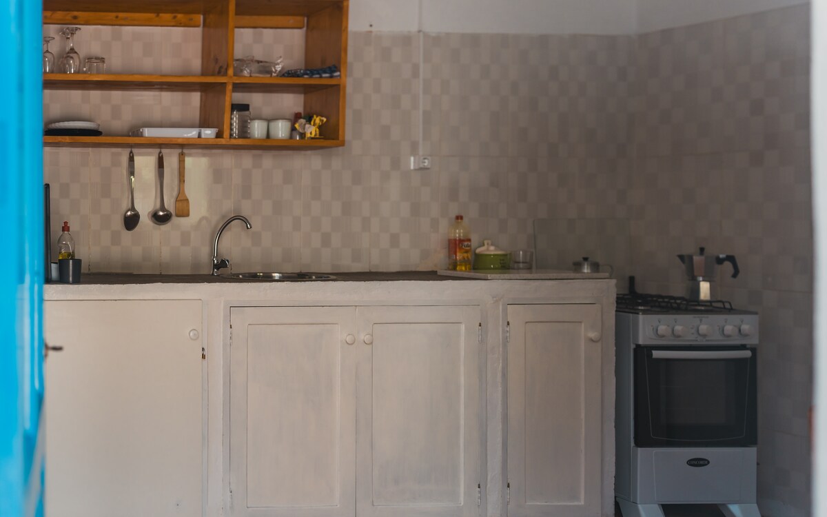 Na izlazu iz Kruzinhe, kuća je nezavisna i ima idealno pogled na more (sunce ceo dan). Spavaća soba sa bračnim krevetom (dušek, garderoba) sa pogledom na more - trpezarija sa opremljenom kuhinjom (sto za 2 osobe, frižider, zamrzivač, posuđe, plinska ploča sa 4 ringle, sudoper, kuvalo za vodu) - kupatilo sa toplom vodom, tušem, umivaonikom i zasebnim WC-om. Privatna terasa sa pogledom na more. GPS: 17.168115, -25.165849