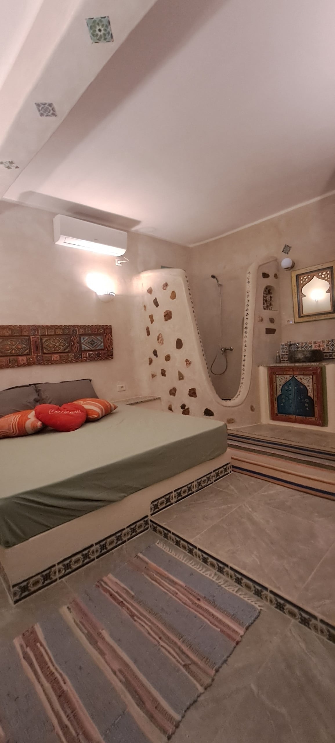 Dobro došli u ovaj šarmantni jednosobni stan koji spaja modernu udobnost s tradicionalnim berberskim stilom. Idealno za opuštajući boravak u Ghomrassenu, ovaj mirni smještaj odgovara putnicima koji putuju sami, parovima ili malim porodicama. Ima udoban dnevni boravak, potpuno opremljenu kuhinju sa plinskim šporetom, rernom i frižiderom, kao i elegantnu tuš-kabinu u italijanskom stilu. Bilo da istražujete region ili se jednostavno opuštate, ovaj autentični prostor nudi sve što vam je potrebno za nezaboravan boravak.