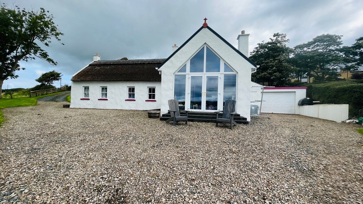 Naša čarobna seoska kuća sa privatnim pristupom plaži je samo najopuštenija mirna lokacija. Pozivamo vas da zagrijete prste na plamtećoj vatri na travnjaku; probate slani sprej na morskom povjetarcu; doživite toplu dobrodošlicu Donegala. Naš moderni slamnati dom nudi vrlo posebnu vrstu odmora za cijelu porodicu i savršeno okruženje za miran odmor ili porodično okupljanje.