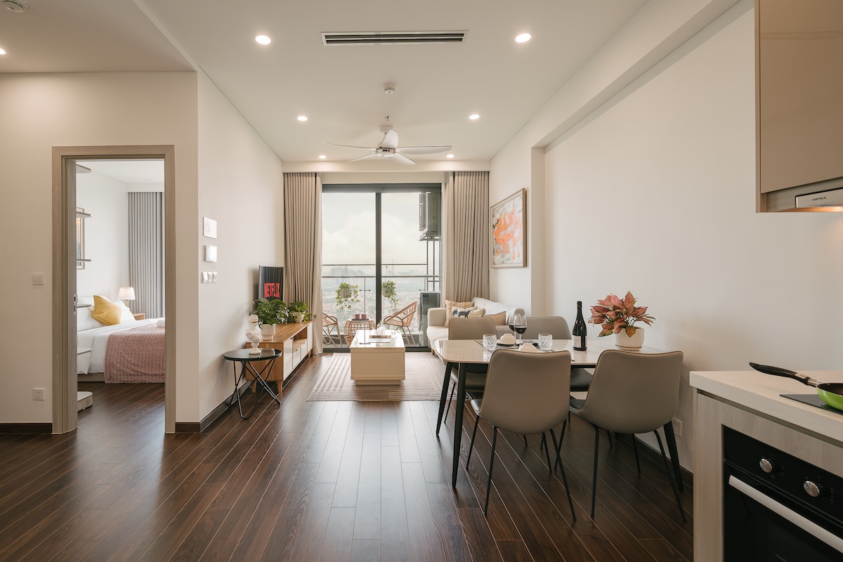 Luksuzni apartman u japanskom stilu sa 1 spavaćom sobom, 1 kupatilom, odvojenim tušem i pametnom Toto opremom, koji se nalazi u Landmark 2 – Swanlake Onsen, vrhunskom centralnom području Ecopark-a. Iz stana se pruža panoramski pogled na park Labuđe jezero, vile na ostrvu i predivan noćni pejzaž, a u blizini se nalaze japanski onsen, teren za golf, akademija EPGA, ulica s hranom, supermarket, restorani, kafići, teretana, spa centar, otvoreni bazen koji radi tokom cijele godine, uređene bašte i japansko jezerce s japanskim šaranima.
