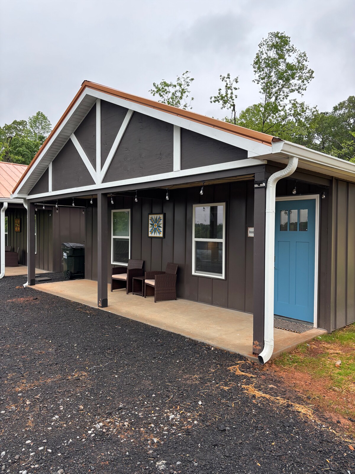Potpuno novi 500 kvadratnih metara park model tinyhome 100 metara od jezera Cunningham . Sa pristupom predivnom prostoru za kamin u zajednici sa pogledom na jezero u maloj maloj zajednici. Ima 3 kreveta. Dva bračna kreveta i jedan bračni krevet . 10 minuta od centra Grira. 25 minuta od centra Grinvila. Nema KUĆNIH LJUBIMACA.