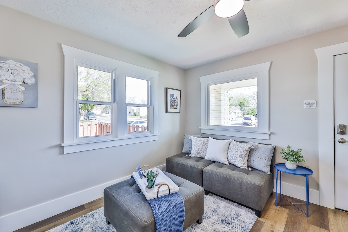Uživajte u elegantnom boravku u ovom smještaju u centru grada sa privatnim đakuzijem. Savršeno za opuštanje, skijanje ili rad! Aktivnosti u blizini uključuju Topgolf i biciklističke staze. Većina glavnih skijališta udaljena je manje od 30 kilometara: Solitude, Brighton, Alta, Snowbird, Snowbasin, Park City i Deer Valley. Samo čajna kuhinja - bez šporeta ili šporeta, ali uključuje mikrotalasnu pećnicu, mini frižider - nema zamrzivača, friteze, toster, aparat za kafu Keurig, čajnik, tanjire, činije, činije za salatu i pribor za jelo. Zabave apsolutno zabranjene