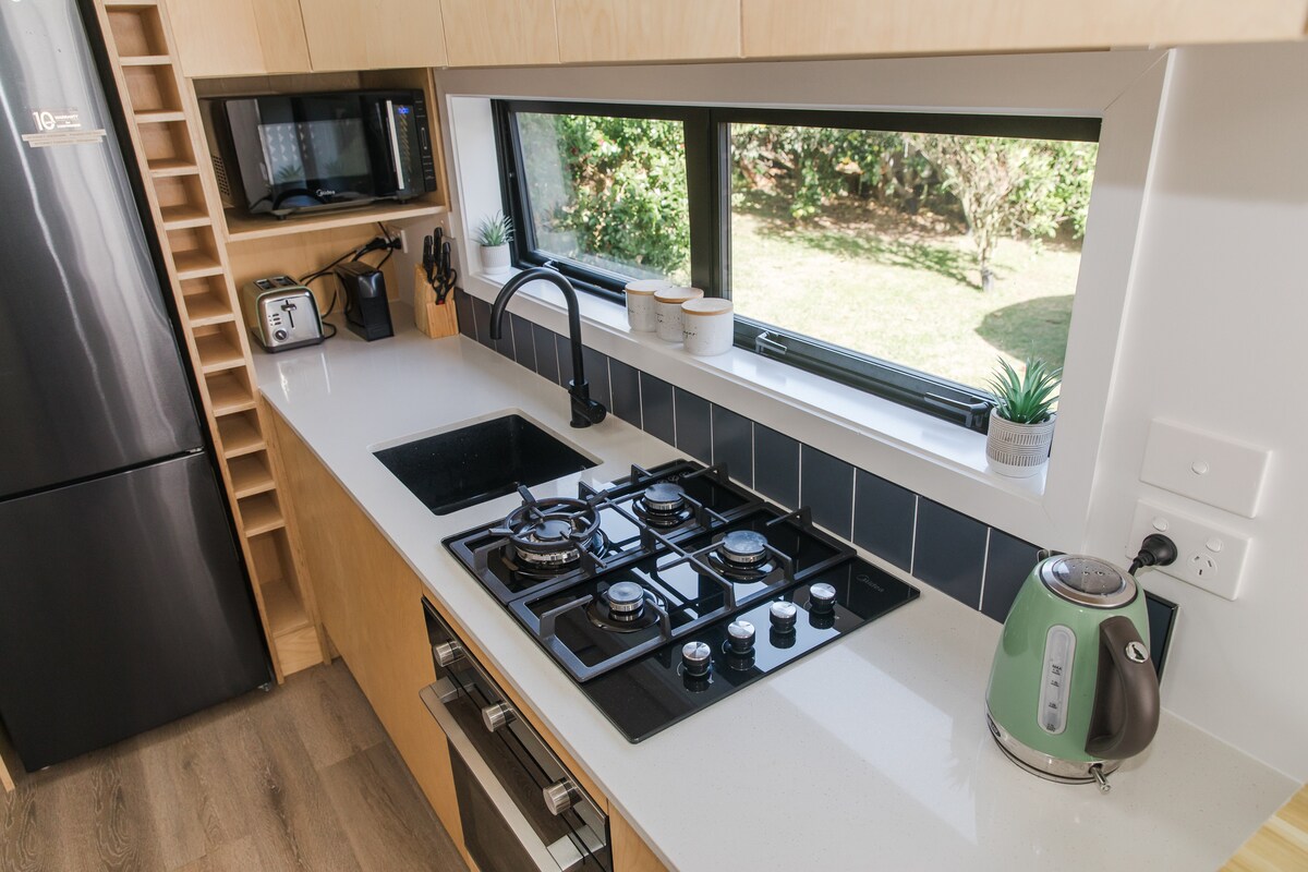 Otkrijte naš divan minijaturni dom, idealno smešten samo nekoliko trenutaka od zapanjujuće plaže Papamoa. Prigrlite besprekornu fuziju udobnosti i plaže koji žive u ovom skrivenom dragulju minijaturne kuće. Precizno izrađen, ovaj prostor nudi i izolaciju i spokoj, sa luksuznim spa centrom za vaše potrebe za opuštanjem, a istovremeno ostaje blizu legendarne planine Maunganui. Vozite se ili prošetajte samo nekoliko kilometara niz put do prelijepih kafića i restorana koji se nalaze oko Papamoe.