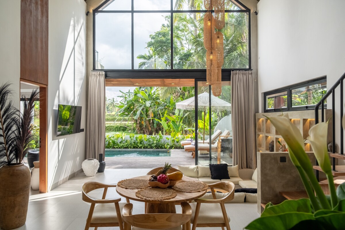 Uronite u čaroliju naše vile od bambusa s naglaskom od plemenitog ratana – mjesto gdje se izrada, luksuz i priroda spajaju u nezaboravno iskustvo. Na 230 m² se razvija prostor pun prostora i elegancije, stvoren za potpunu privatnost i dobrobit. Okruženi bujnim pirinčanim poljima, zelenom džunglom i umirujućim zvukom rijeke, pronaći ćete utočište koje balansira tijelo i dušu – nekoliko minuta od centra Ubuda.