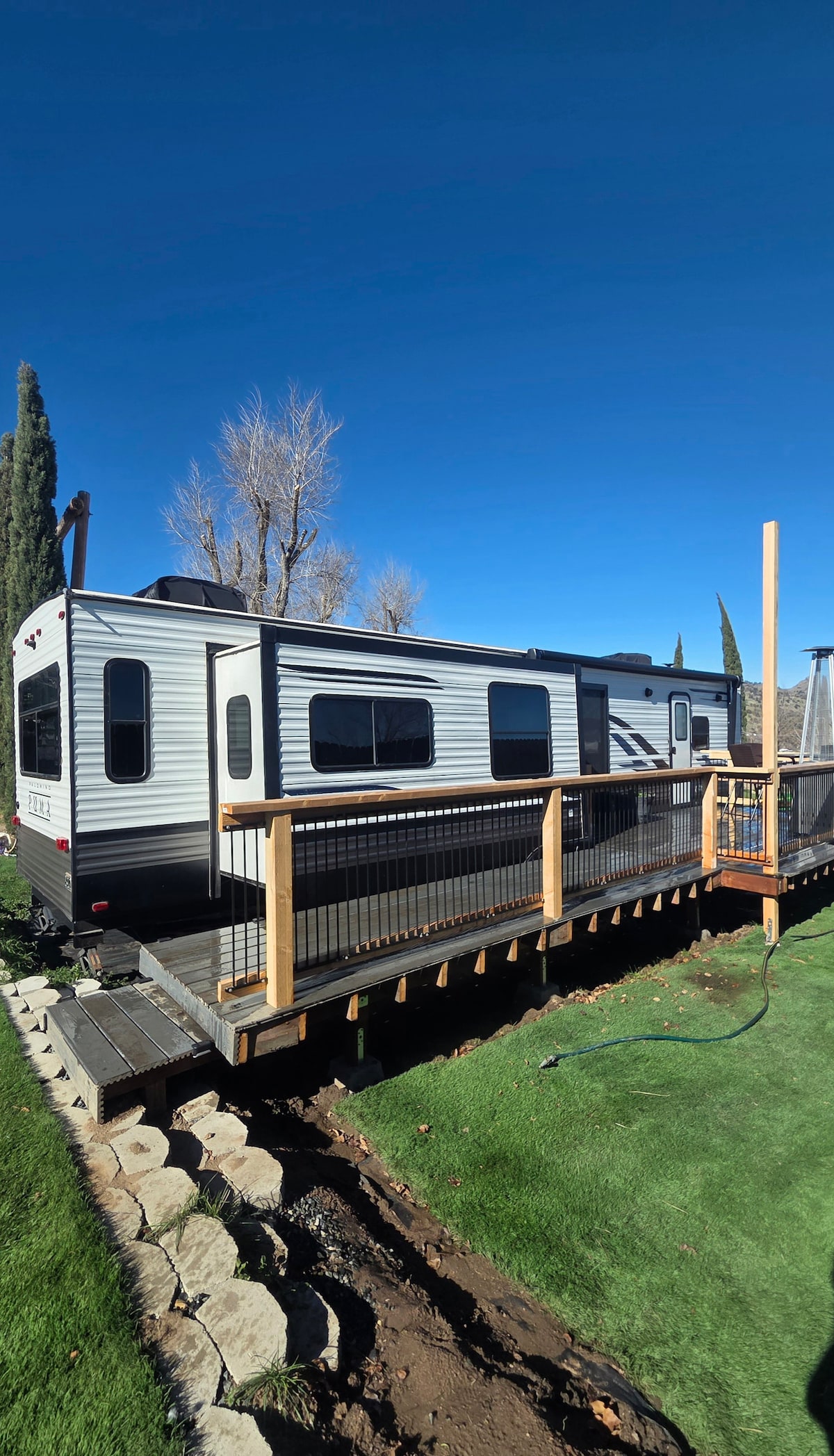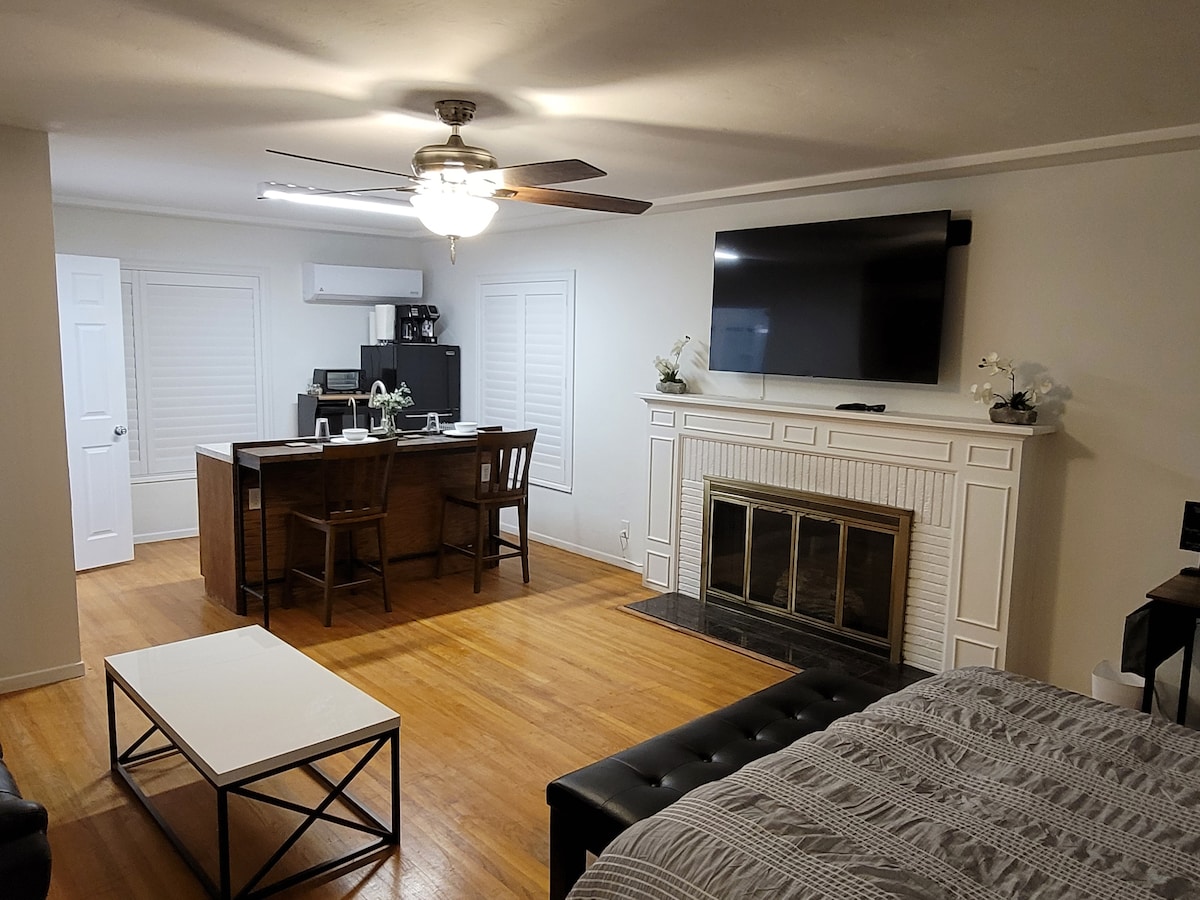 This is a beautiful one-bedroom, loft home. Features include: mountain views private entrance fully stocked kitchen private washer/dryer gas fireplace master balcony 10min from town kept very clean This place is perfect for long-term stays! It's in a separate building from our home so you have privacy. We're in a great, central location to enjoy the downtown area or Stallion Springs/Bear Valley areas. If you're looking for a place that's charming, clean and relaxing, then come stay with us!