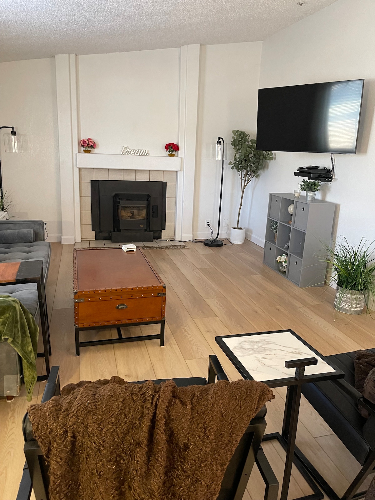 Welcome to our mountain home, Stallion Springs is very safe, quiet and beautiful place. Our home is just been renovated everything is brand new 50 inch screen TVs in each room King beds in both rooms all there is to listen to is the birds and wildlife you will see beautiful elk and deer the neighbors are very quiet kind and courteous We love dogs and all animals and always donate at least 10% of all rental profit to that cause. SCE May shut power off if high winds or high fire threat condo #33