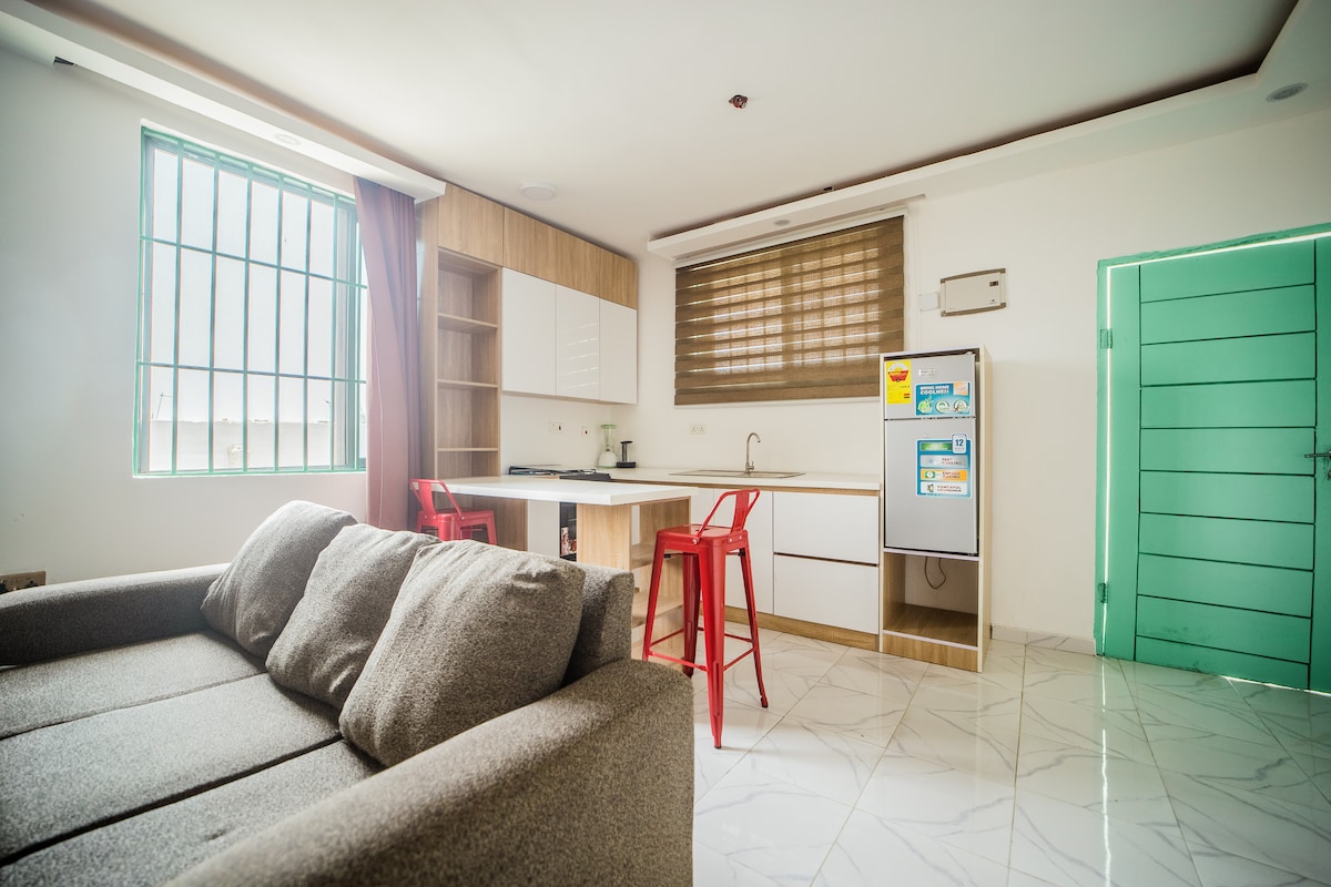 Discover Flat 3 - a spacious, 2-bedroom ground-floor apartment at Phoenix Nest by Huis Hospitality. Enjoy an open-plan living/dining area, a fully equipped kitchen, 1 bathroom + guest washroom, and a balcony overlooking the neighbourhood. Includes steward support, 12-hour night security, and concierge services on request. Ideal for business and leisure stays in Community 6, Tema.