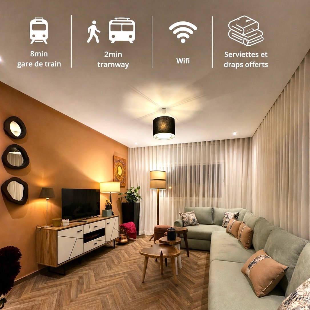 Istražite ekskluzivnost od 5 minuta do plaže u ovom svijetlom stanu od 100 m2. Dvije spavaće sobe, prostrana dnevna soba i opremljena kuhinja spajaju udobnost i sofisticiranost. Smješten u živopisnom okruženju, okružen primamljivim restoranima, nudi potpuno uranjanje. Tramvaj je udaljen nekoliko koraka, taksiji su odmah dostupni i mesto u garaži, dopustite da vas odnese elegancija ovog utočišta, gde svaki detalj pomaže da vaš boravak bude nezaboravan.