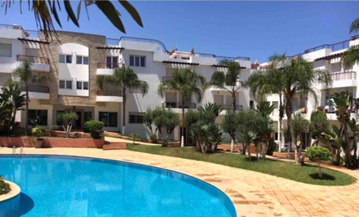 Smješten na Aveniji Mohamed VI, El Menzeh u Rabatu, ovaj stan, sunčan, udoban i moderan, idealno se nalazi na 2. i posljednjem spratu ograđenog i bezbjednog prebivališta non-stop. Rezidencija ima mnogo zelenih površina, prostor za igru za djecu, teretanu i prelijepi bazen. Svi neophodni sadržaji su u blizini smještaja (supermarket, kafić-restoran, frizer, apoteke...)