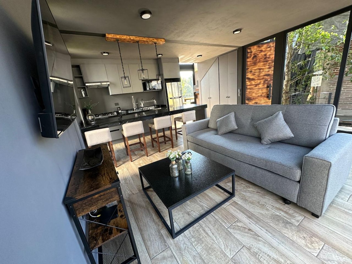 To je nevjerovatna seoska kuća u bašti avokada. Nalazi se u četvrti San Huan Atezcapan, na maloj udaljenosti od doline Bravo. Idealna je za odmor i odmor u gradu, za dane odmora i odvajanja. Postavljen je na dva bloka. U jednom dijelu su javni prostori, dnevna soba, trpezarija, kuhinja i prostorija za doručak napolju. Odmah sa jedne strane nalaze se prostori za opuštanje. Glavna spavaća soba sa bračnim krevetom, ormarom, terasom i sopstvenim kupatilom.