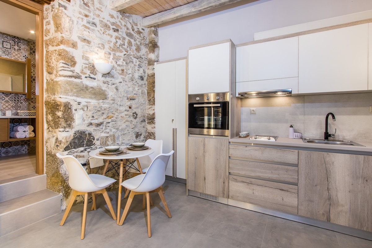 Stan Anaxagoras se sastoji od stambenog kompleksa otvorenog plana i odlikuje se impozantnim originalnim venecijanskim lukom, koji odvaja kuhinju i dnevni boravak od spavanja. Ima direktan pristup vašoj (privatnoj) bašti sa roštiljem i velikim trpezarijskim stolom sa pogledom na more. Sve je renovirano sa puno ljubavi prema tradicionalnim detaljima u 2017. godini. Ovde možete da udišete bešku istoriju Krita u jedinstvenoj i udobnoj atmosferi.