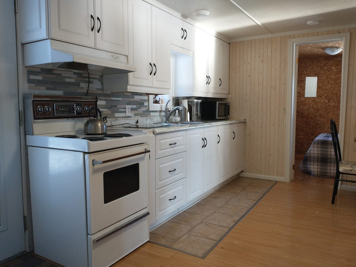 Nudimo vam sve da biste se osjećali kao kod kuće. Mi takođe primamo kućne ljubimce. Uživajte u sopstvenom prostoru sa privatnim ulazom, 1 spavaćom sobom (bračni krevet sa grejanim dušekom ako je potrebno) i dodatnim prostorom za spavanje na kauču na razvlačenje. *Vazdušni dušek i/ili dušek za decu na naduvavanje takođe su dostupni za dodatno spavanje (na zahtev)* Potpuno opremljena kuhinja i kupatilo sa mašinom za pranje/sušenje veša. Pet minuta do graničnog prelaza u Mejn, SAD (Fort Kent). Blizu skijališta (5 minuta) i slikovitih staza za motorne sanke.