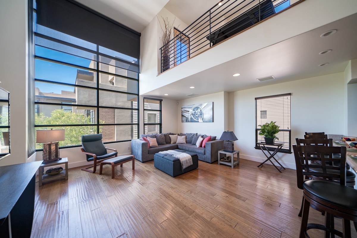 Jedinstveni stan u srcu centra Tempea, na korak od ASU-a, lake pruge, Mill Ave, Whole Foods Market, Tempe Town Lake i10 minuta od aerodroma. Kondominijum na spratu sa sopstvenim prostorom za spavanje i privatnim kupatilom. Kondominijum ima garažu, kuhinju,mašinu za pranje/sušenje veša i balkon s pogledom na bazen. Na spratu se nalazi 1 spavaća soba, kupatilo, glavni dnevni prostor sa kaučem, TV, kuhinja i balkon. Dole se sastoji od odvojenog prostora za spavanje, kauča,ormara,televizora, bračnog dušeka na naduvavanje ikupatila. STR - 000862