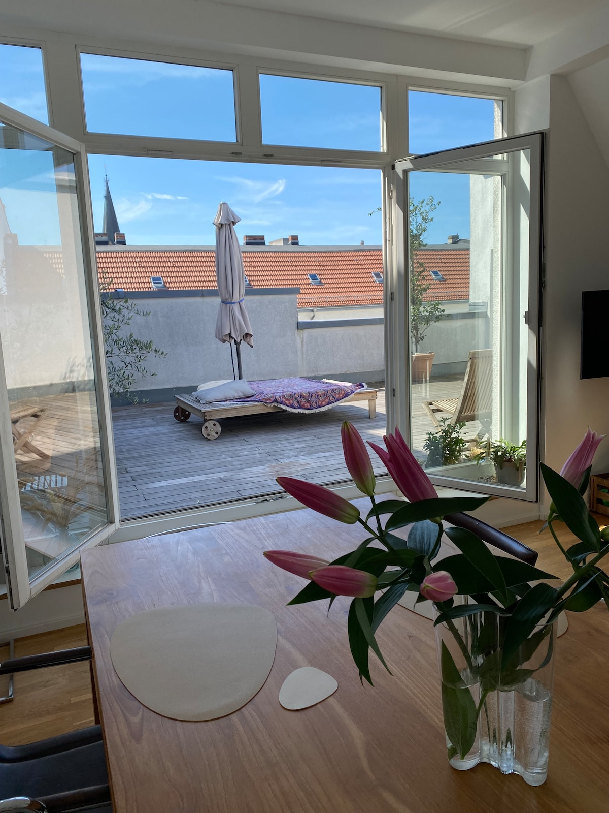 Take it easy at this unique and tranquil getaway. Welcome to the most beautiful spot in Kreuzberg! The apartment is located directly at the park "Hasenheide" with a south-east facing balcony over the park. It has two rooms - one smaller bedroom and one living room with a kitchen. It’s fully furnished, has controllable lights, a speaker system and floor heating.