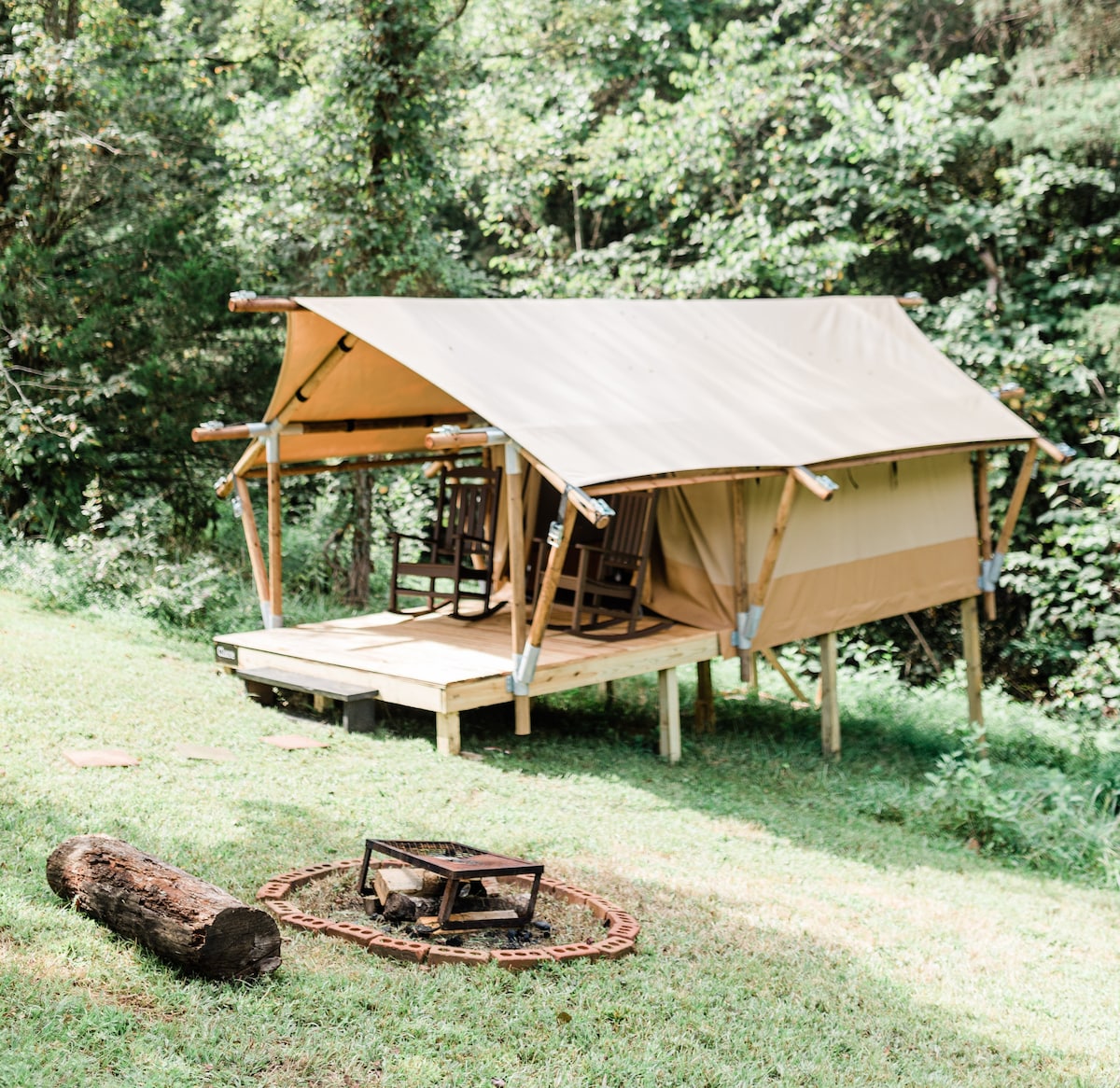 This glamping tent has it all. Heat & Air con, TV, views, grill and NEWLY added HOT TUB! Thunderhead Ridge Getaways offer a NEW way to explore the Smoky Mountains. We’re so excited about our luxurious glamping stays with breathtaking views of Thunderhead Mountain & the Great Smoky Mountains of Tennessee. Enjoy a large luxurious partially covered deck with a grill. Check out our 2BR “Flying Squirrel.” NO PETS 250$deposit. Follow us on Social Media @thunderheadridgegetaways #Glampingwitha view