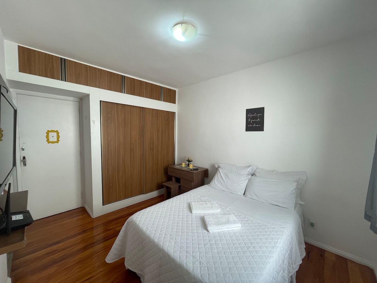 Moj prostor se sastoji od dnevne sobe, odvojene spavaće sobe, kupatila, kuhinje i zatvorenog balkona sa velikim prozorom. Udoban stan za dobru sezonu, sa udobnošću, sa posuđem, kuhinjskim priborom, šporetom u frižideru, mikrotalasnom (potpuno novom) klima-uređajem, ventilatorom, bračnim krevetom (novi) dvostruki kauč na razvlačenje, ormar, komode HD 29-inčni TV, Wi-Fi, sto sa 4 stolice, fotelja u spavaćoj sobi, filter za vodu, ulični gas. Vrlo dobro se nalazi, u blizini gradske vijećnice i Cedae.