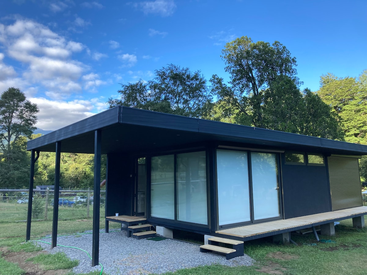 Jedinstvena kuća s velikim prozorima za uživanje u zvijezdama, dolini i pogledu na vulkane, Viljariku, Kerupilan i Lanin. 13 kilometara od Pukona, u blizini Los Ojos del Caburgua i Lago Caburgua i ispred rijeke Liucura. Mirno područje velikih prirodnih ljepota. Kuća na solarni pogon. ZA BOLJE ISKUSTVO, NA VRATIMA SE PREPORUČUJE 4/4 VOZILA. ZA 4/2 PARKING JE UDALJEN 40 METARA OD KAPIJE, DO KOJEG SE DOLAZI PRIJATELJSKOM STAZOM NA KAPIJI.