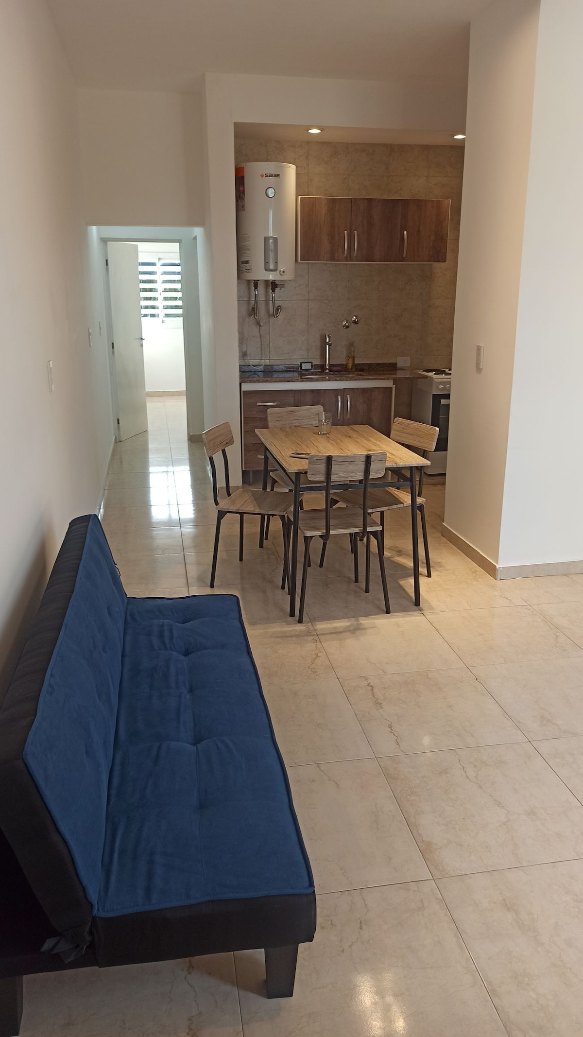 Exelente Ubicacion, a pocas cuadras de la Plaza Principal, en Pleno Centro. Cochera para UN vehiculo incluida, con porton automatico. Disfrutá de la sencillez de este alojamiento tranquilo y céntrico. Completamente Amoblado. Una Habitacion con cama matrimonial, living con sofa cama. Un Baño completo. Cocina comedor completamente equipada. Smar TV. Servicios Incluidos (Luz, Agua, Gas Natural e Internet Fibra Optica 100 Megas). Ropa de cama y Juego de toallas. Ambientes Climatizados.