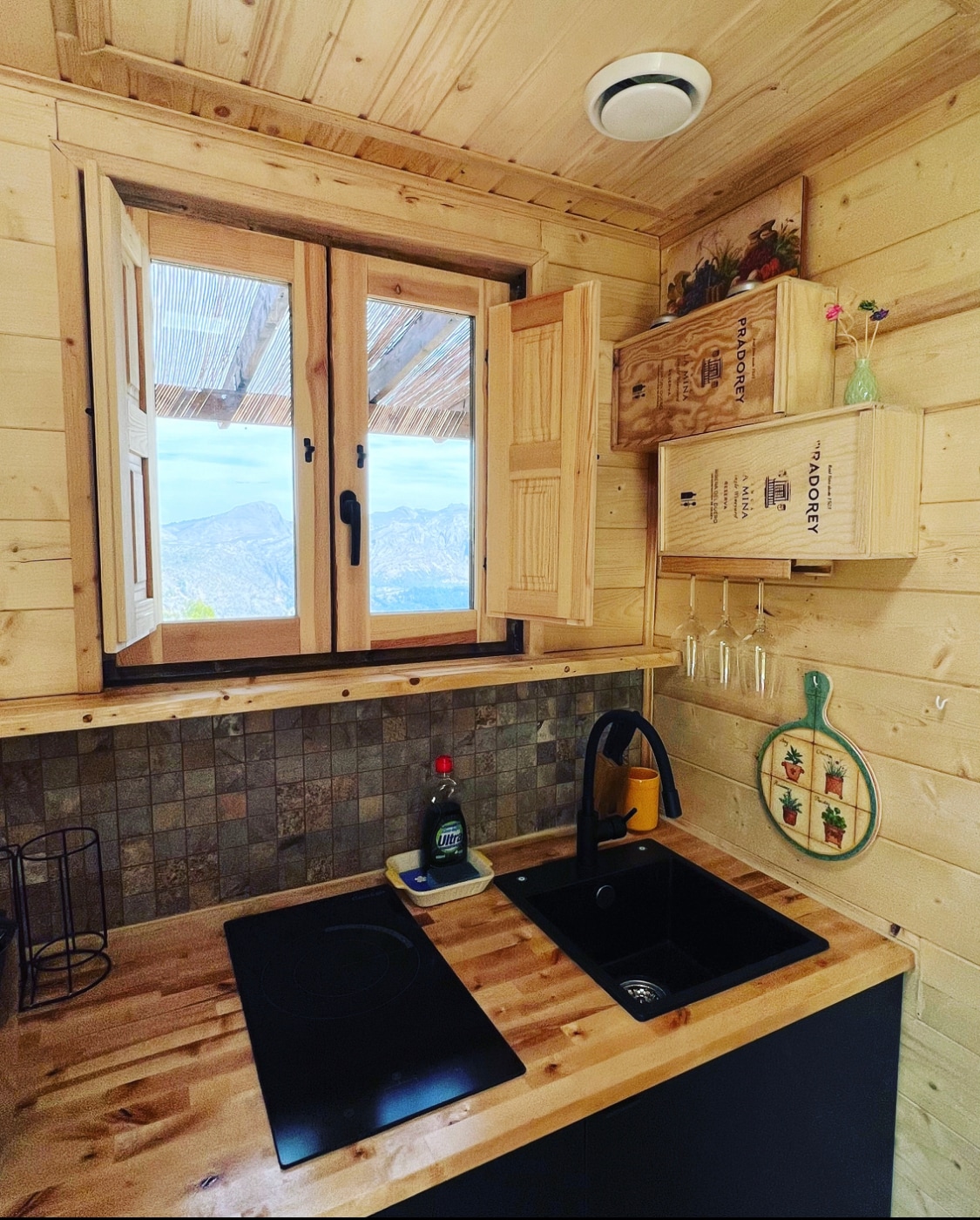 Stan se nalazi 200 metara od starog grada. To je treći sprat sa jugoistočnom orijentacijom. Ima 1 glavnu spavaću sobu sa bračnim krevetom venčanje, kupatilo, kuhinja i dnevni boravak sa italijanskim kaučem na razvlačenje. Ceo stan ima plutajući otisak. Glavni dragulj je njegova terasa, gde možete uživati u divnim trenucima, sa pogledom na planine Aitana i Aixortà, a u pozadini se vrh Bernije i mora, nadamo se da će vam se svideti.