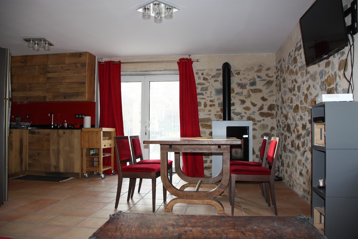 Opustite se u ovom mirnom i elegantnom smještaju od 95 m2 koji se nalazi 2 km od malog karakternog grada Marcolčs, nedavno rangiranog najljepših sela u Francuskoj. Naša prilično tradicionalna kantalijanska kuća dočekuje vas u svom zelenom okruženju, smještenoj visoko i nudi veoma lijep pogled na selo. Možete da otkrijete radionicu689, našu radionicu od drveta i mozaika i učestvujete u predstavljanju tokom boravka.