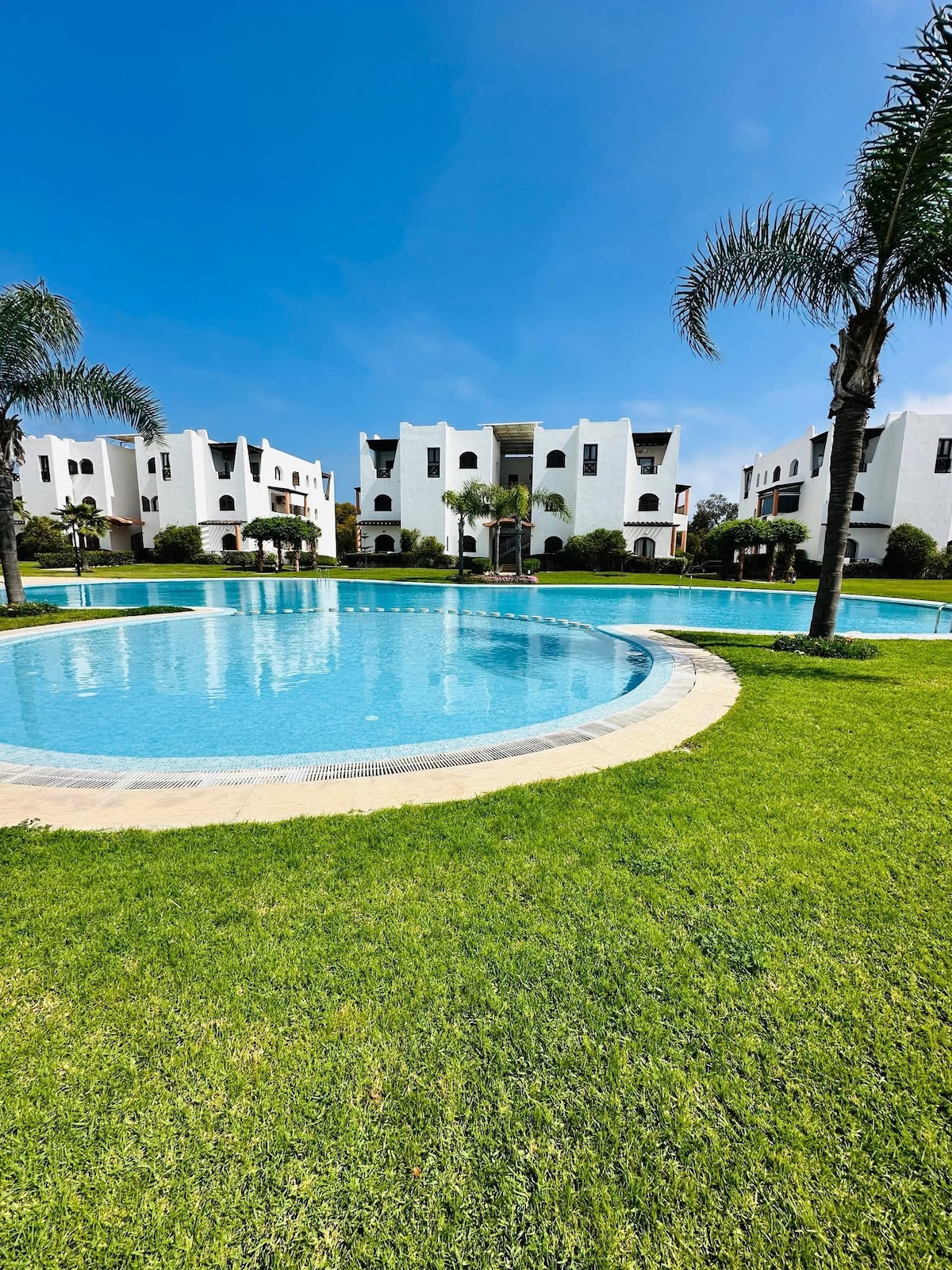 Dobrodošli u naš potpuno novi šarmantni stan, u mirnom i sigurnom kompleksu "La Perle de Cabo" koji se nalazi u šik području Cabo-Negro, samo 5 minuta od plaže Cabo Negro i plaže Martil automobilom. Naš apartman je veoma dobro opremljen sa terasom sa pogledom na baštu i bazen. Dođite i provedite nezaboravan odmor u ovom prelepom apartmanu, ukusno opremljenom. • Parking je dostupan (besplatno i bezbedno 24/7).