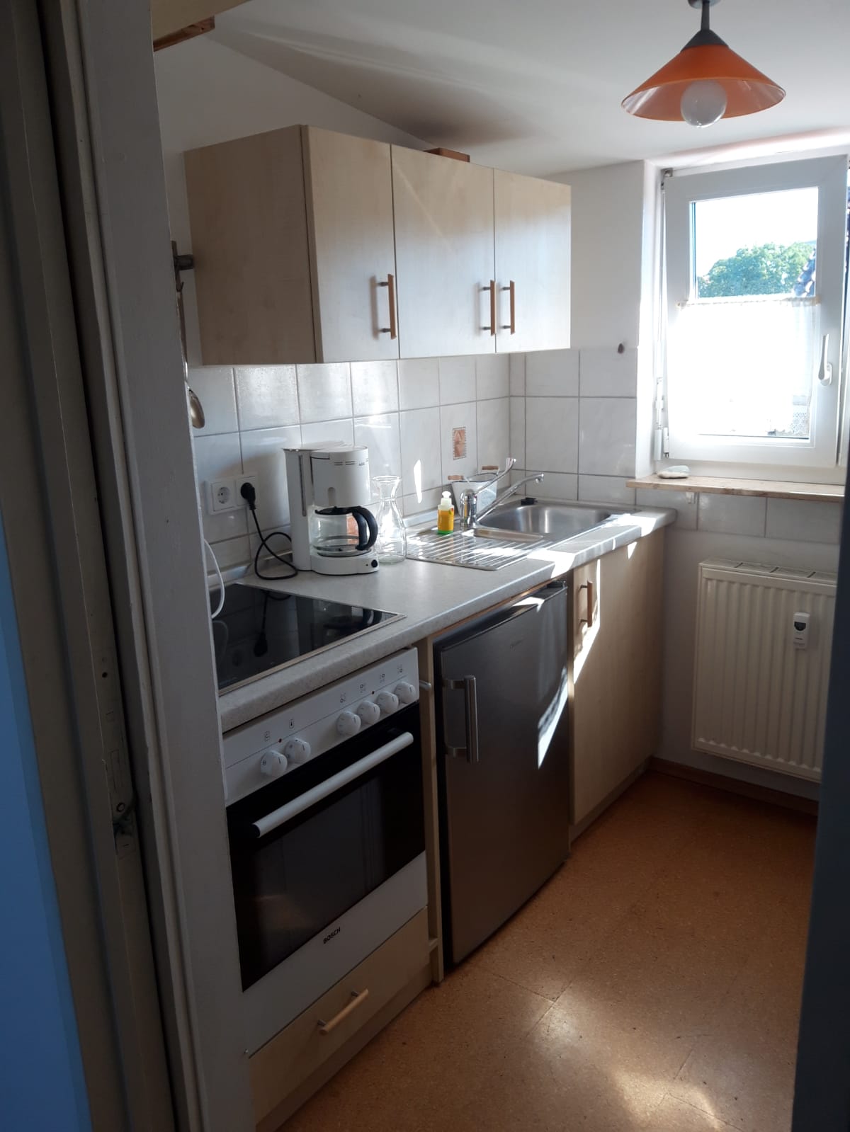 Die ca. 70 qm große 3-Zimmer-Wohnung liegt im Dachgeschoß unseres Einfamilienhauses. Sie ist über eine außenliegende Treppe erreichbar. Sie liegt in einem sehr ruhigen Wohngebiet, in einer Sackgasse, am Stadtrand von Tettnang. Die Stadtmitte ist ca. 2,5 km entfernt.