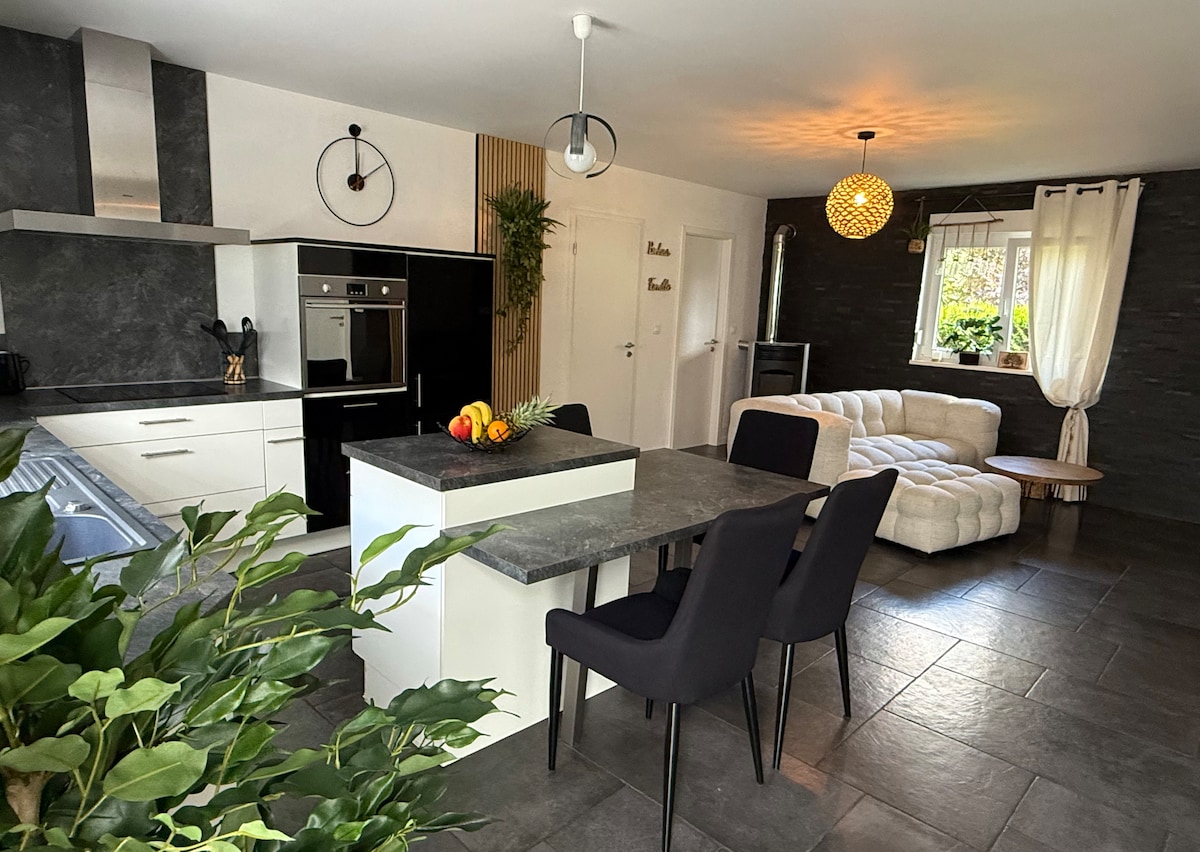 U srcu zelenog okruženja okruženog našim životinjama, nudimo našu seosku kuću. Mesto je tiho i mirno. Privatni SPA i privatna sauna su dostupni u neograničenom broju (uz naknadu od 20 € po boravku bez obzira na broj ljudi) Bašta ima prostor za igru + sajlu U nezavisnom dijelu bašte nalazi se konstrukcija na naduvavanje Biciklističke staze okružuju seosku kuću, možemo vam posuditi besplatne električne bicikle + dječije sjedište