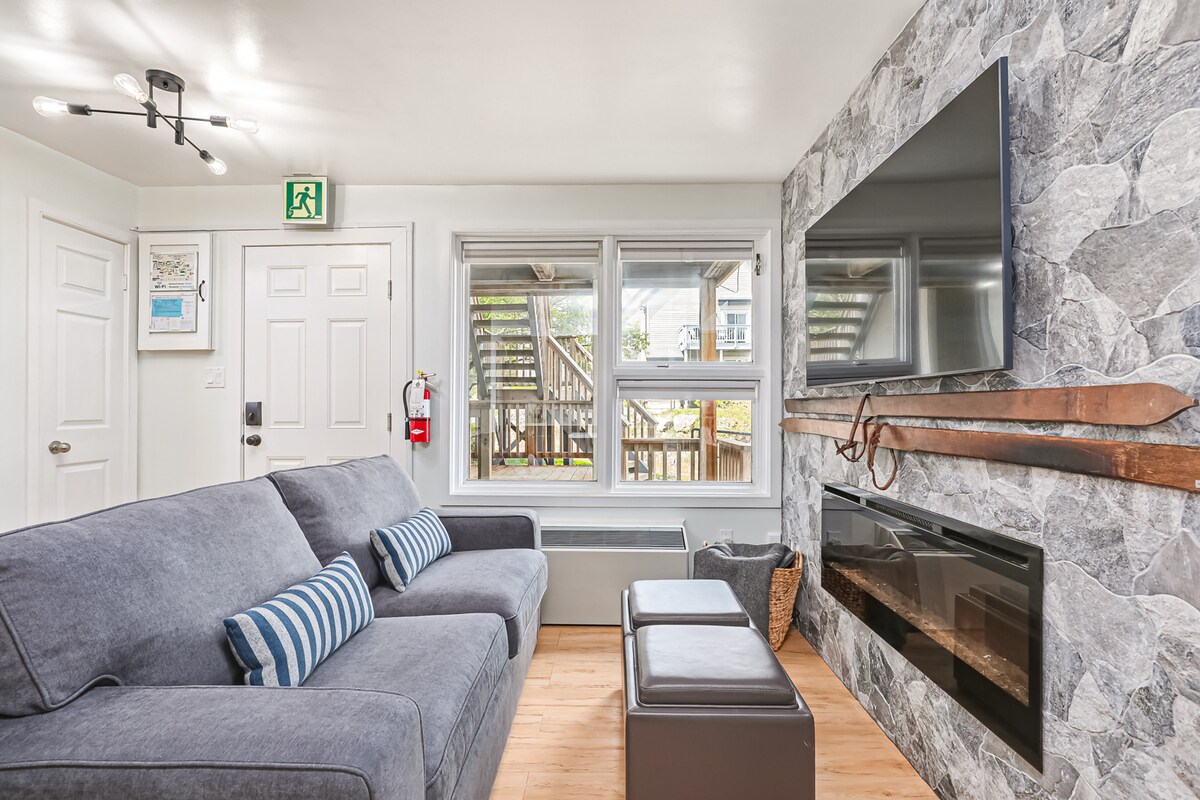 Renovirana studio jedinica u odmaralištu Nort Krik sa: * Bračni krevet (širine 180-220 cm * SMART TV, brzi Rodžers Ignite WI-FI i TV * Kauč na razvlačenje * Kameni kamin * Moderan, elegantan dekor *Imajte na umu da nema tradicionalne rerne – postoji kombinovana mikrotalasna/konvekciona rerna zajedno sa pločom za kuvanje *Usluga prevoza * Hidromasažna kada tokom cele godine *Bazen (zatvoren za zimsku sezonu – ponovo se otvara u proljeće 2026.) *Teniski tereni *Skijanje ili pješačenje do Nort Hila (pješačke staze, srednje napredne dnevne skijanje)