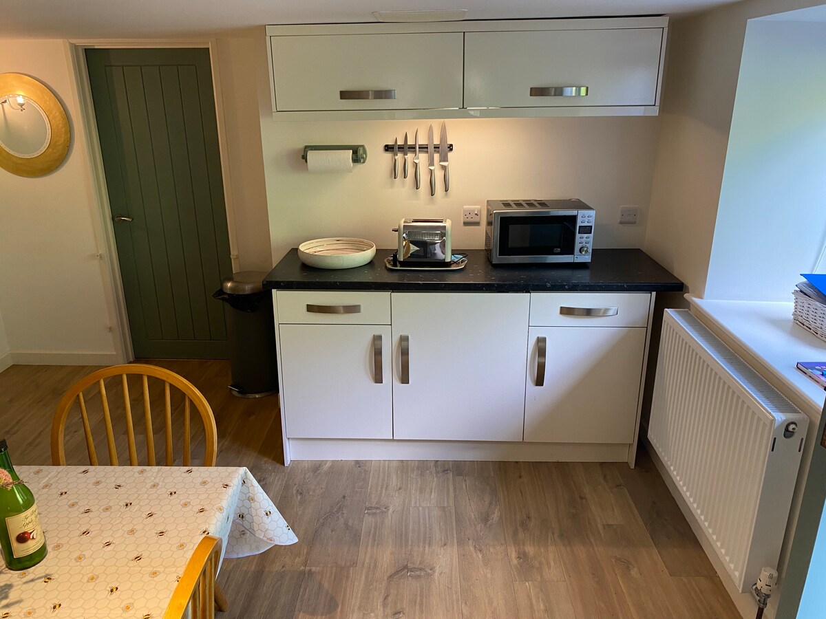 Samoposlužna kućica u malom mirnom selu Wye Valley u brdima iznad Monmoutha. Smješten u 6 hektara šume i skrivenih vrtova. Velika spavaća soba sa udobnim bračnim krevetom (60") i krevetom za jednu osobu, dnevni boravak sa gorionikom za debla, TV i WiFi. Zapanjujuća velika spa soba sa saunom, tušem, đakuzijem i malim toaletom. Kuhinja sa indukcionom pločom, roštiljem i ventilatorom, mikrotalasnom pećnicom, mašinom za pranje veša, sušilom za kosu i zamrzivačem, odvojenim kupatilom sa toaletom.