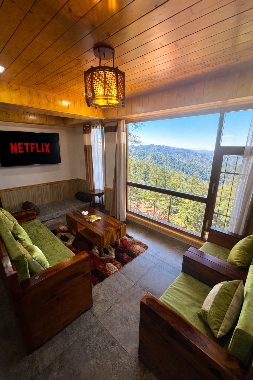 Glamor, samo 1 sat udaljen od Šimle. Zapanjujuća unutrašnjost od orahovog drveta, uključujući sav namještaj. Drvena kada na otvorenom, savršena za uživanje u svježem planinskom vazduhu. Okolina je otvorena i prostrana. Možete da šetate, uživate u panoramskom pogledu i steknete utisak o seoskom životu. Ovdje je sve organsko, od hrane do mliječnih proizvoda. Ako se ne osjećate kao kod kuće, postoje kafići i restorani udaljeni samo 3–4 km, a možete ih posjetiti ili naručiti dostavu hrane