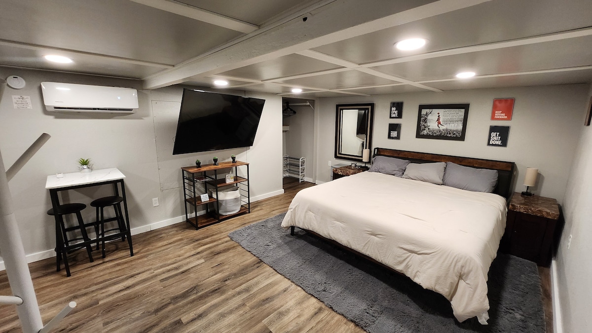Prostorna pod ima tako zabavan osjećaj i temu. Želimo da gostima pružimo inspirativno iskustvo prostora. Ovaj stan se nalazi iza drugog Air BNB-a. Mašina za pranje/sušenje veša Potpuno opremljena kuhinja Bračni krevet (širine 150-179 cm) 🐶 Kućni ljubimci DA 📍400 kvadratnih stopa ✅ Dva minuta od BOK/Koks centra ✅ 6 minuta od Kainove plesne dvorane ✅ 7 minuta od ulice Čeri ✅ 12 minuta od akvarijuma Dženks ✅ 12 minuta od mjesta okupljanja ✅ 10 minuta od izložbenog centra ✅ 7 minuta od TU U svakom trenutku smo vam na raspolaganju za sva pitanja