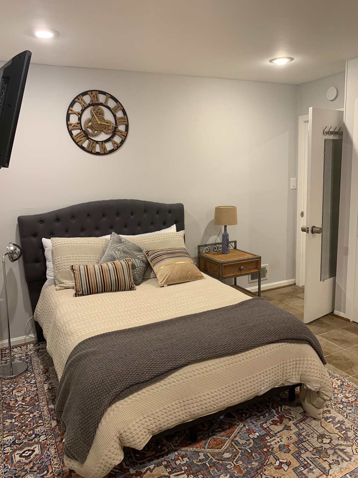 Privatni engleski podrumski stan sa prozorima pune veličine i plafonima od 2 metra • Prednji i zadnji privatni ulaz sa ulazom bez ključa • Terasa na otvorenom (zajednički prostor) • 1 bračni krevet (širine 150-179 • Bežični internet • Smart TV sa Netflix-om • Puna kuhinja sa gasnim dometom • Nespresso aparat i električni čajnik • Sveži peškiri i posteljina za 4 osobe • Mašina za pranje/sušenje veša • 2 gosta su optimalna, ali treći gost bi po želji mogao da spava na kauču