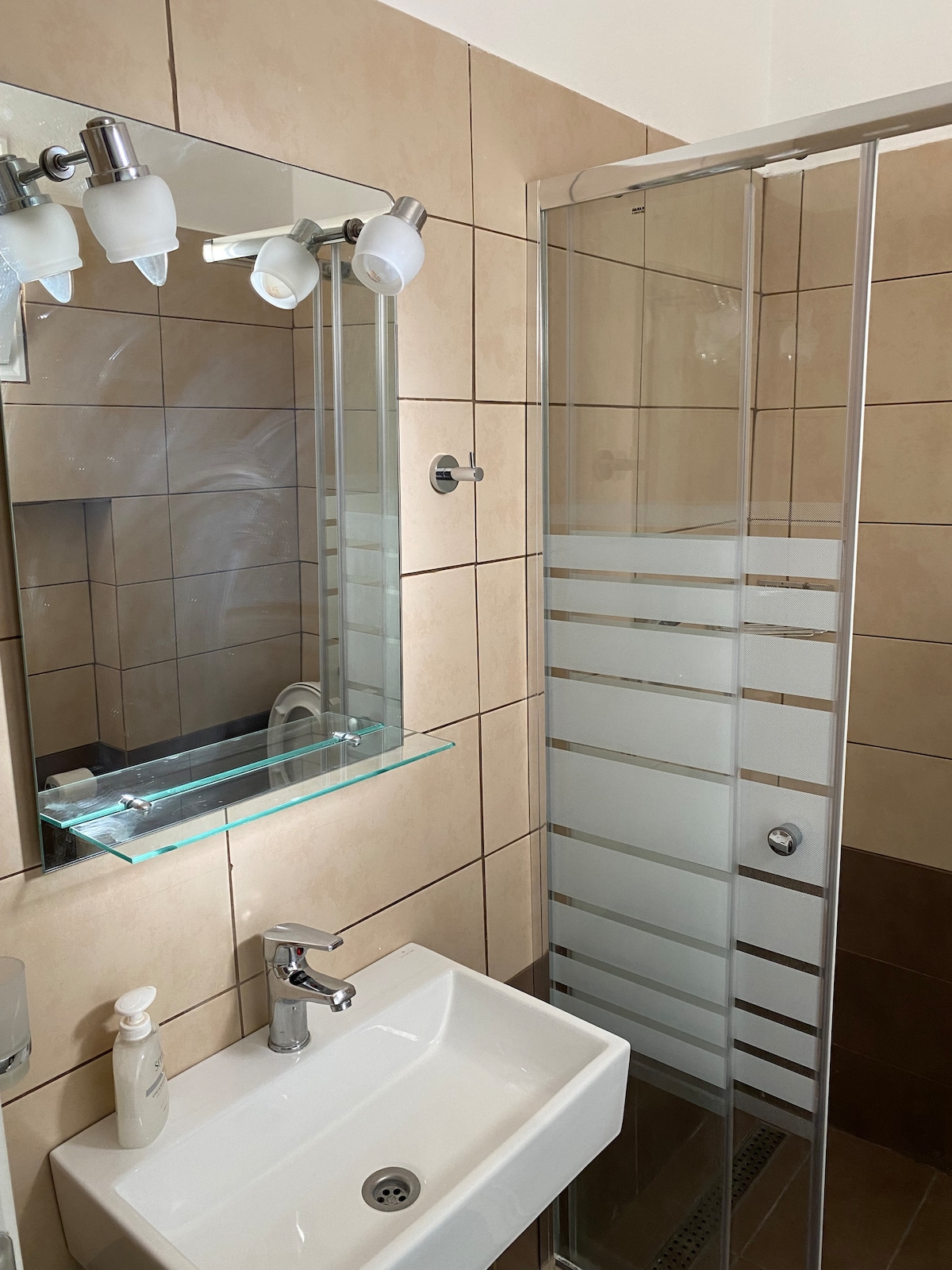 The cozy Galini Sea Apartment 2 is located in a hotel in Kerkira just a short walk from the beach. The 2-storey property consists of a living room with a sofa bed for one person, a kitchen, 1 bedroom and 1 bathroom and can therefore accommodate 3 people. Additional amenities include high-speed Wi-Fi, air conditioning as well as a TV. A baby cot is also available. The hotel offers a shared garden where you can enjoy relaxing mornings.