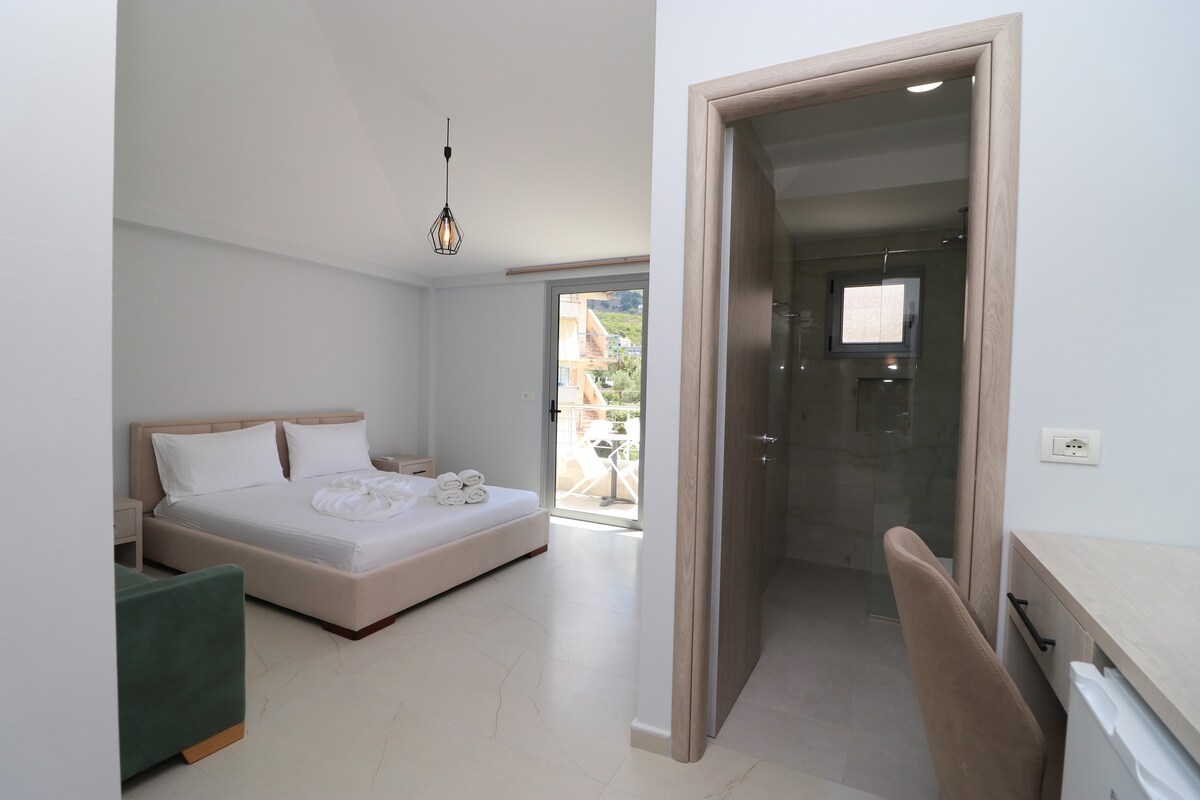Dobro došli u savršeno mjesto za odmor! Uživajte u potpuno renoviranoj sobi sa modernim dekorom i udobnošću doma. Izađite napolje do zadivljujućeg bazena s pogledom na grad i more koji oduzima dah - savršen za opuštanje. Započnite jutro besplatnim tradicionalnim albanskim doručkom, svježe pripremljenim samo za vas. Bilo da ste ovdje da se opustite ili istražite ljepotu Sarande, naš topli i privlačni prostor pruža nezaboravan boravak. Vaša udobnost nam je na prvom mjestu!