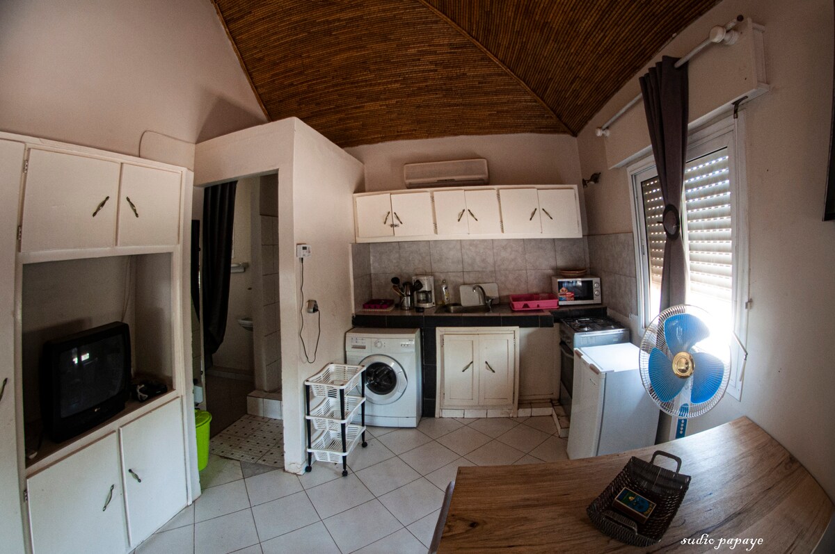 Welcome to Residence Natangue in Saly .... super location and close to everything. Studio Lipstick is a luxury studio (completely renovated March 2026) and is located 20 meters from the large swimming pool. Wi-Fi - Air conditioning - TV (Canal+). The studio features a king-size bed, kitchenette, and walk-in shower. Security 24/7. Beach nearby, as well as several supermarkets and restaurants. Gnilane is your host on-site. You can also check in at night! We speak: Dutch, French, English, German.