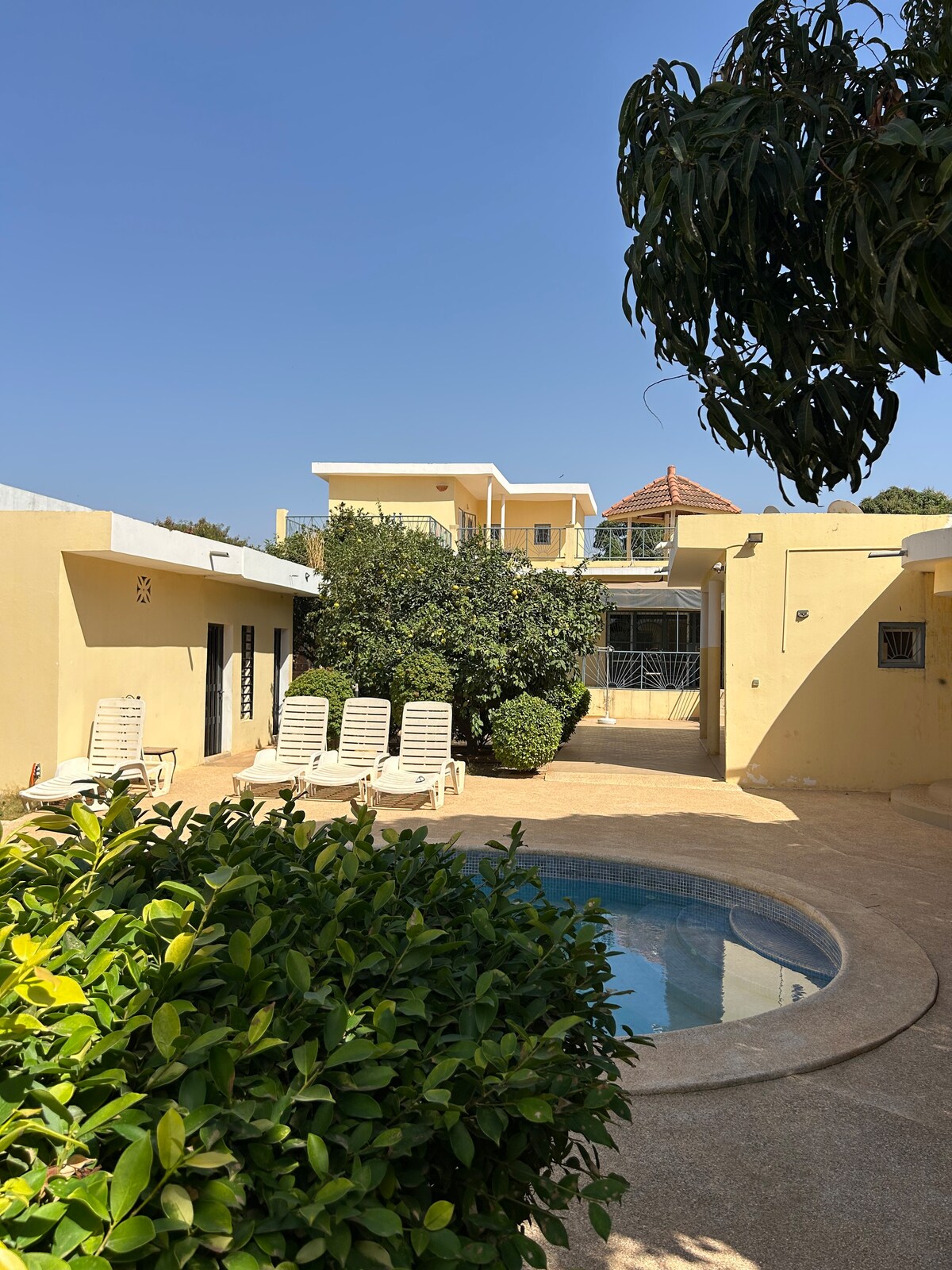 Otkrijte ovu prelijepu vilu za 7 osoba , miran, prostran bazen (maksimalna dubina: 1m70 ), idealna za odmor sa porodicom Pored svake sobe nalazi se prelijepo kupatilo sa duplim sd i odvojenim toaletom. Za potpuni odmor, čišćenje i priprema obroka (na zahtjev) su uključeni u cenu (osim nedjeljom i praznicima). Domar je na licu mjesta non-stop. Klima-uređaj u cijeloj vili Pored toga, struja (200 cfa/kw) Wi-Fi Kanal+( bijeg) Cena za 1 noćenje= 65000