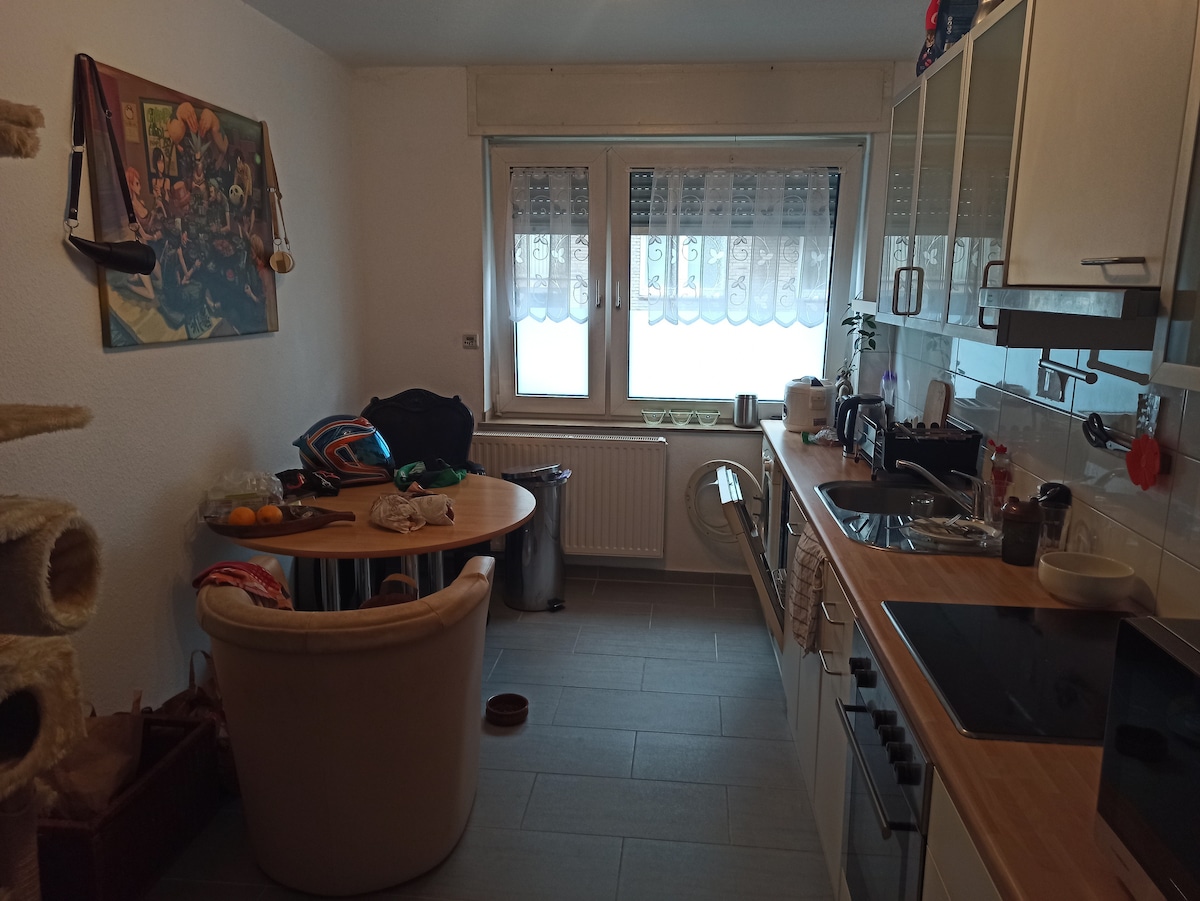 U našoj kući (na 10 km od centra grada) nalazi se zasebna jednosobna soba sa sopstvenom čajnom kuhinjom i kupatilom. Do grada se lako stiže automobilom (15-20 minuta), a u drugom pravcu je kratak put do Ajfela, Hohea Ven i Monsčoa. Prijava od 15:00 Odjava do 12.00 sati (Rani dolazak i kasni odlazak mogu biti mogući po dogovoru u zavisnosti od povezivanja rezervacija.)