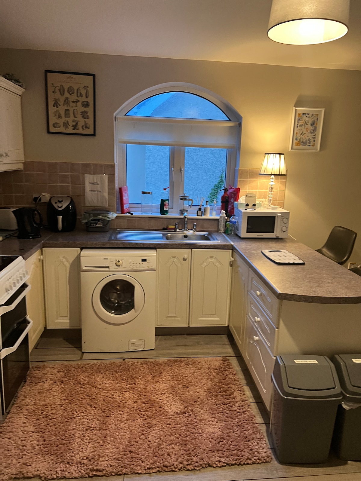 Dobro došli u moj luksuzni stan sa opremom za kuhanje u Draíocht na Mara, gdje se udobnost susreće s prelijepim pogledom na okean za nezaboravno utočište. Stan zovem „An Tearmann”, što znači utočište. Zakoračite u prostrano utočište osmišljeno da zadovolji sve vaše potrebe. Uronite u plišani zagrljaj bračnog kreveta nakon cjelodnevnog istraživanja, obavijenog spokojem vašeg privatnog utočišta. Osvježite se u modernom kupatilu, sa peškirima i podmlađujućom tuš-kabinom.