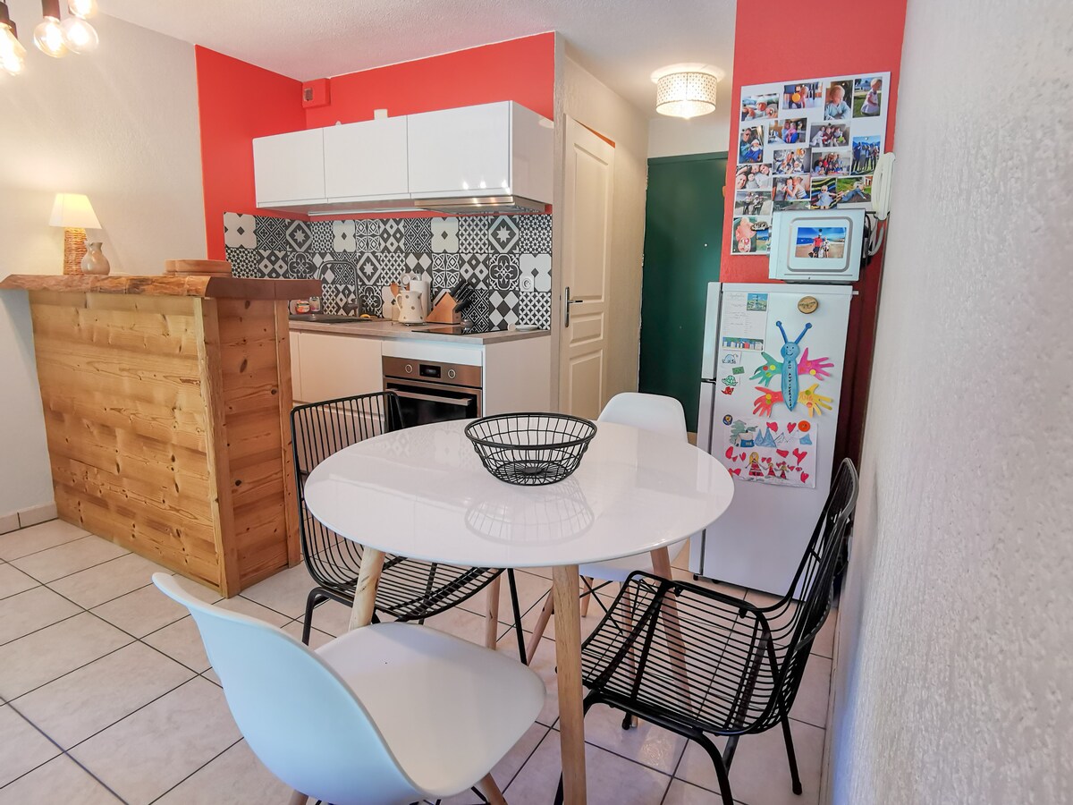 Otkrijte autentičnost udobnog studija, ocenjenog sa 2 zvezdice opremljenog razgledanjem, u tihoj zgradi sa zadivljujućim pogledom na planine. Smješten u podnožju padina, ovaj potpuno opremljeni studio apartman je idealan za parove. Sve je na dohvat ruke: padine, lokalne prodavnice, iznajmljivanje opreme, iznajmljivanje opreme, zabava itd., pa čak i Wi-Fi! na sunčanom i vrlo otvorenom sajtu kako biste osigurali miran boravak u ovom okruženju iz snova.
