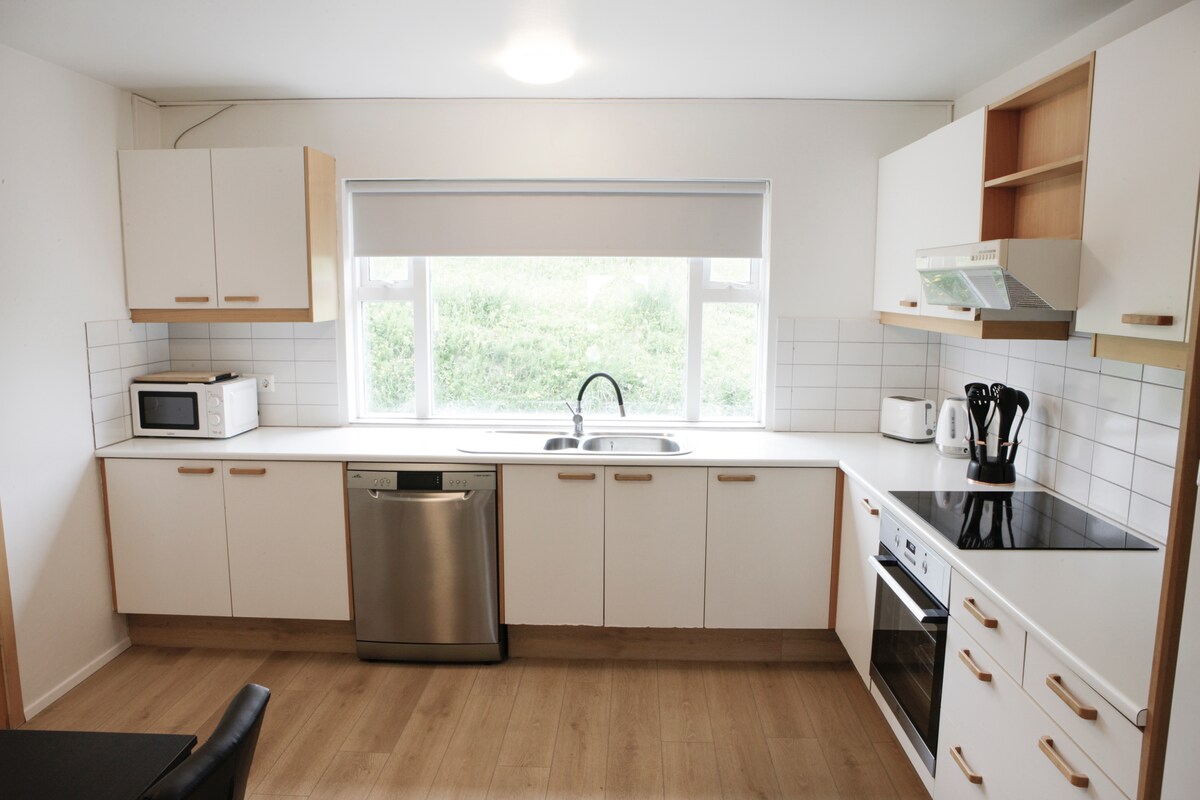 Ásinn-Brennistađir 4 je kuća od 90 m2 za grupu do 7 osoba +krevetac (2025. godina). Kuća se nalazi u netaknutoj prirodi pored polja na farmi Brannistađir, oko 20 km od Egilsstađir-a u pravcu do Borgarfjörđur eystri. Farma je farma ovaca. Živimo na udaljenosti od oko 400 m od Ásinn. Potpuno opremljena kuhinja, mala dnevna soba, prostrano kupatilo (veš mašina i sušilica), 4 spavaće sobe. Zgodan pogled, cairns, život ptica, potoci, porodično okruženje u mirnoj prirodi.