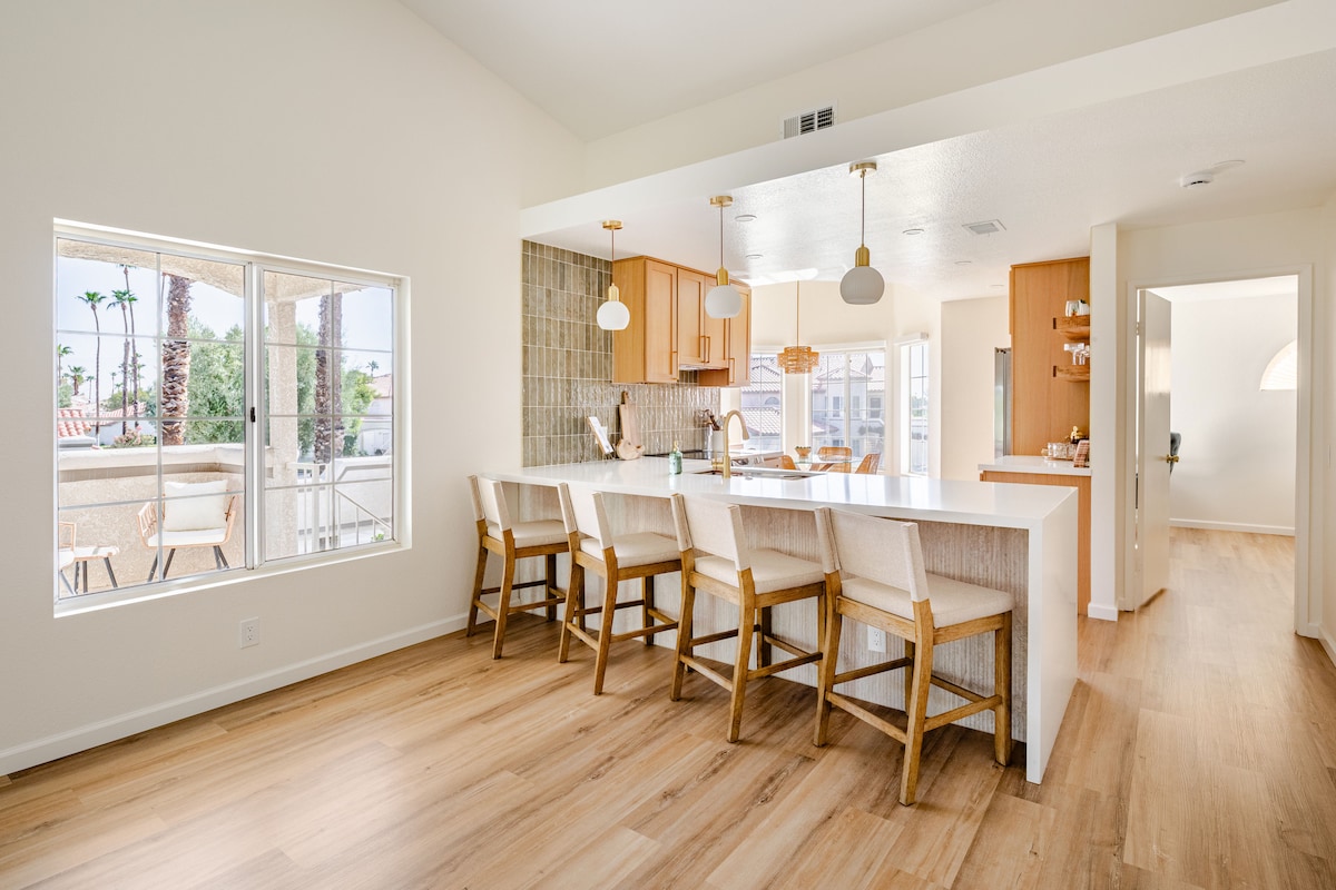 Doživite sunčane dane i mirne noći osvijetljene zvijezdama u ovom modernom smještaju u Palm Desertu. Bilo da planirate kratak odmor, porodični odmor ili putovanje s prijateljima, ovaj pažljivo dizajnirani smještaj nudi udobnost, stil i pristup najboljem što Palm Springs nudi. Uživajte u doručku na privatnom balkonu, opustite se pored bazena ili izazovite svoju grupu na prijateljski meč tenisa ili pikbol. Nakon cjelodnevne avanture, vratite se u prelijepi prostor koji vas poziva da se opustite i napunite baterije.