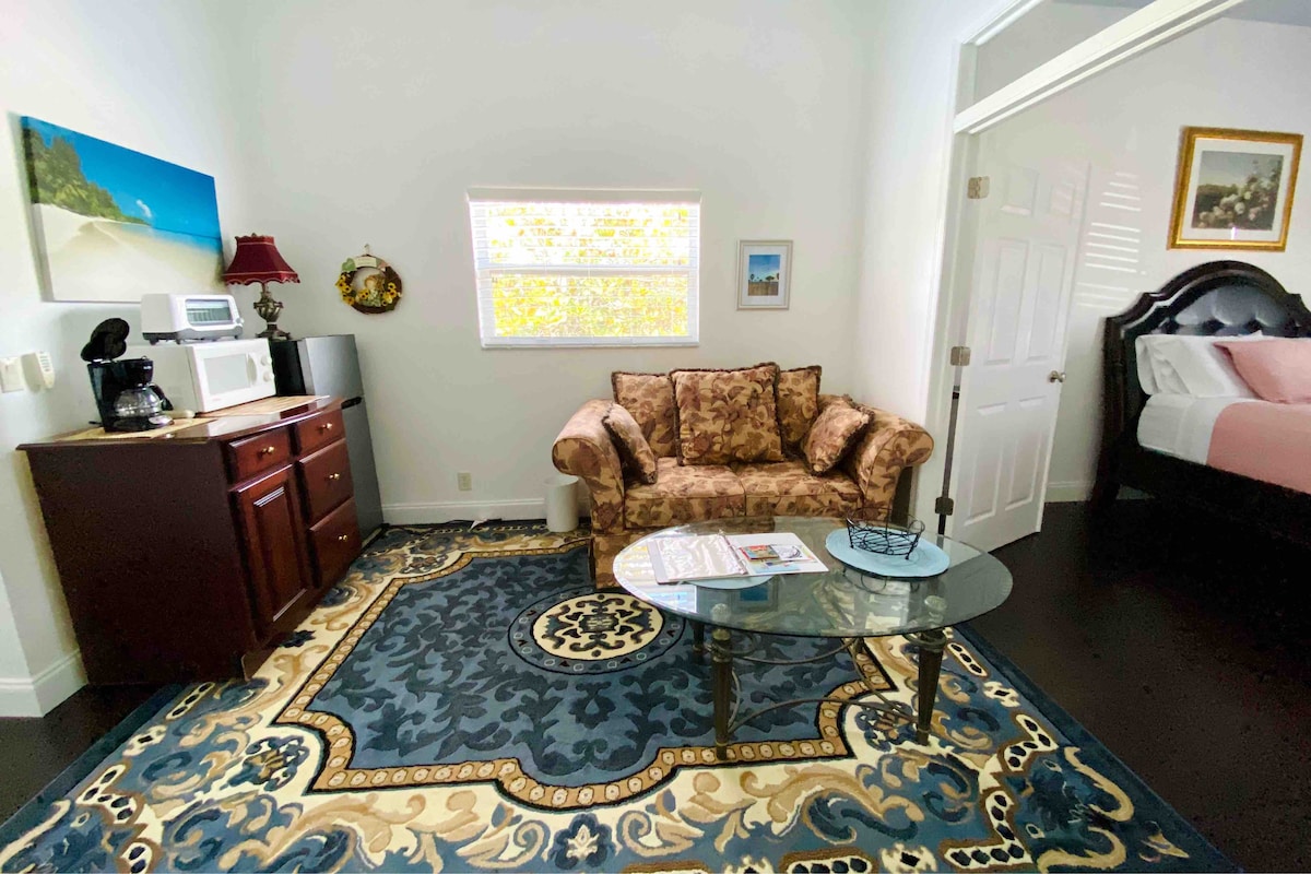Cooper Cabin je izuzetno slatka i besprekorno čista samostalna garsonjera sa kompletnom kuhinjom i kupatilom. Zbog alergija na posetu porodici i prijateljima, NE DOZVOLJAVAMO KUĆNE LJUBIMCE ili ŽIVOTINJE ZA SAPUTNIKE, pa možete da budete sigurni da alergeni za životinje NEĆE predstavljati problem! Smješten na pješačkoj udaljenosti od svega, Tarpon Springs i samo 7 minuta vožnje do plaže Fred Hauard, brvnara Kuper ukrašena je zabavnim dekorom i opuštajućim balkonom na tremu sa bistro setom. Obezbeđeni su bicikli i oprema za plažu!